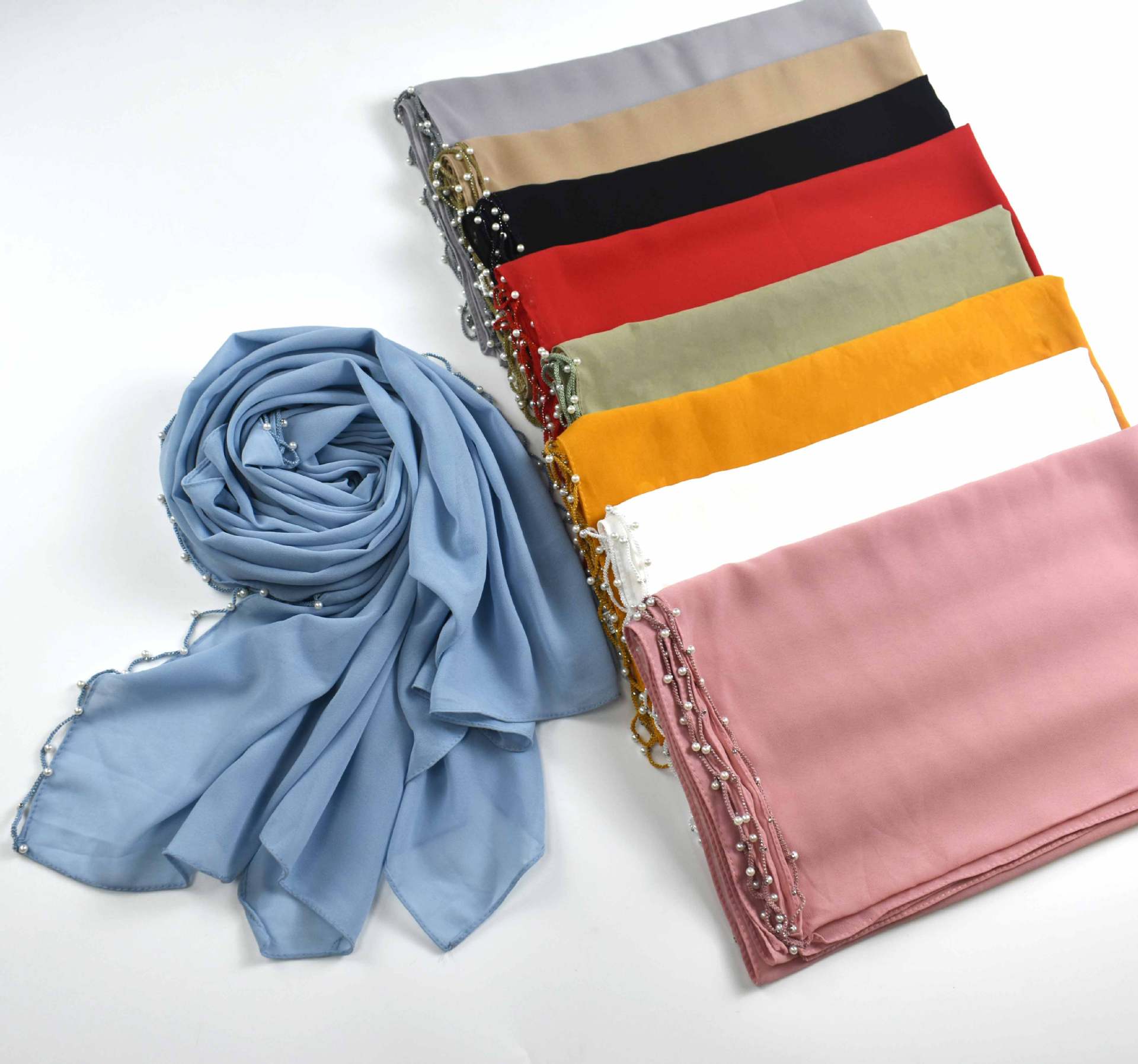 Summer chiffon wavy edge bead long scarf Malaysian Hijab