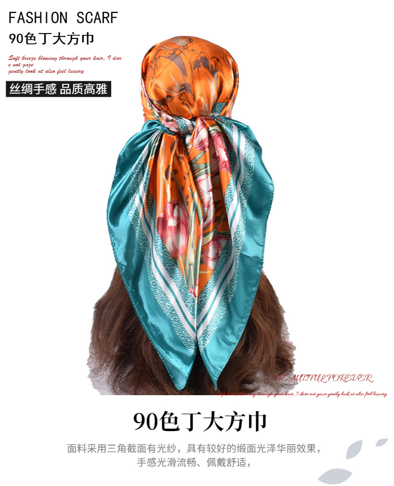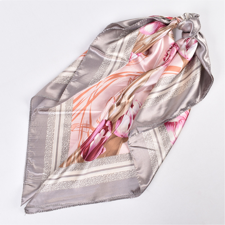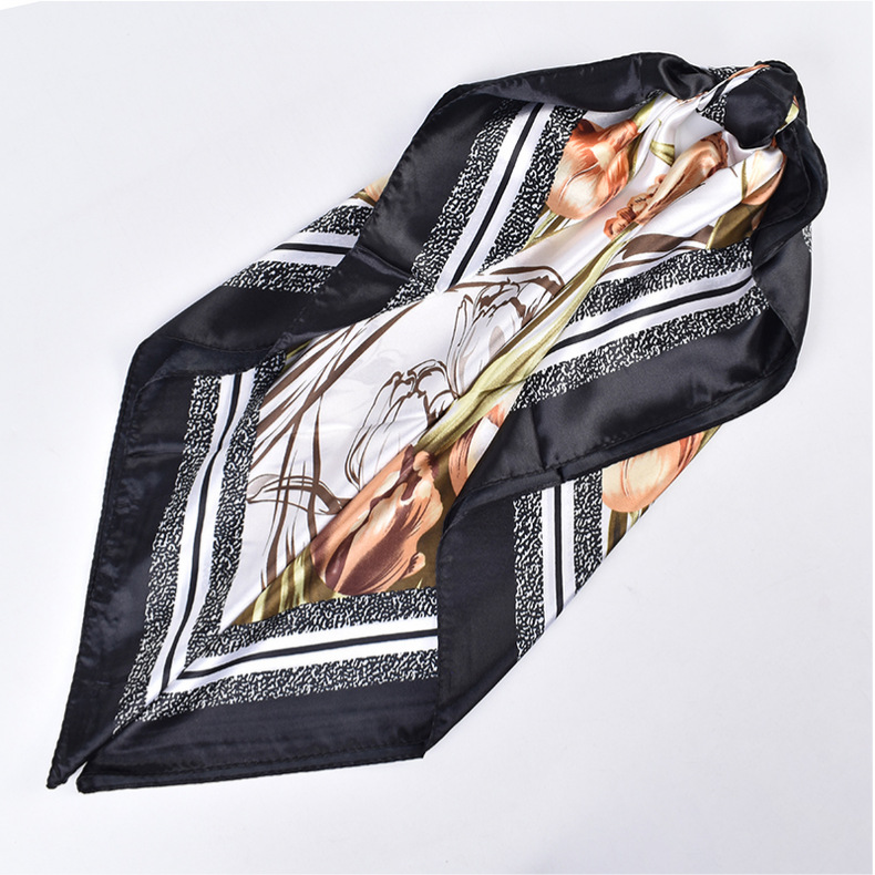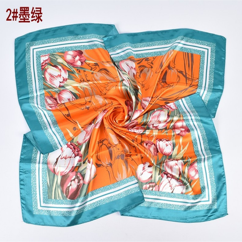 Summer new fashion versatile tulip bouquet print 90-color square scarf silk scarf headscarf