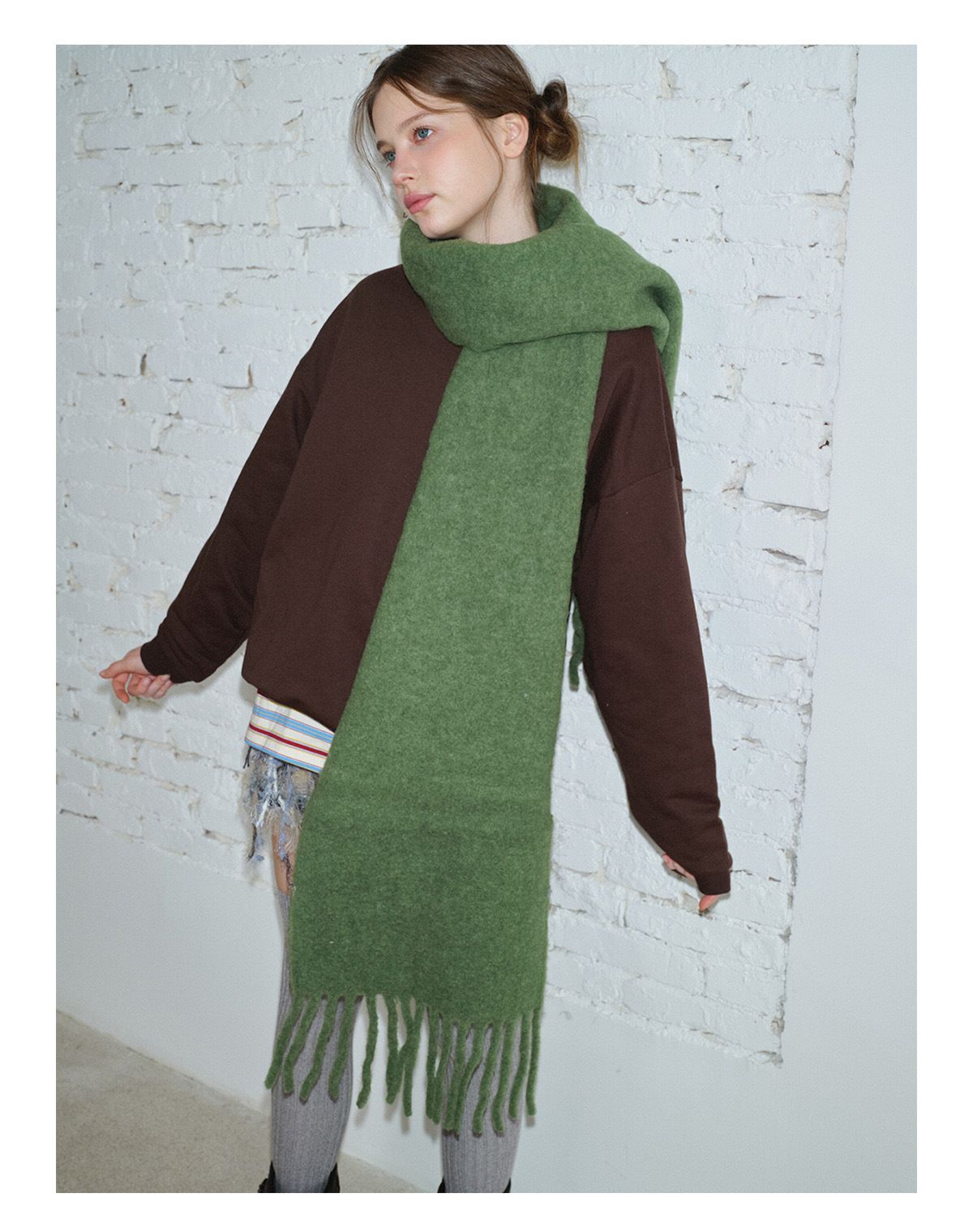 U's same style contains 32 wool solid color scarf for women, soft retro green wool in winter, ins atmosphere to increase the scarf