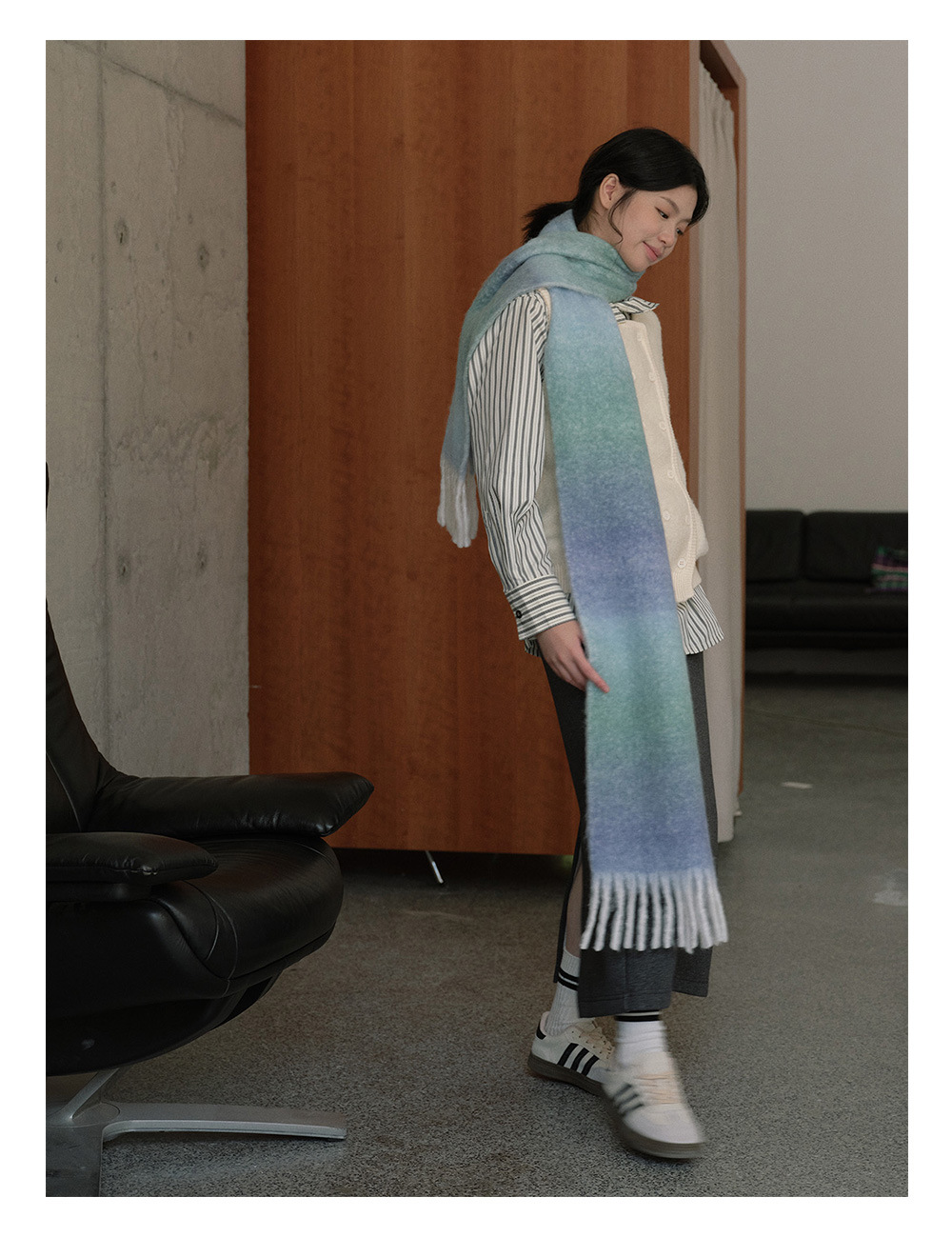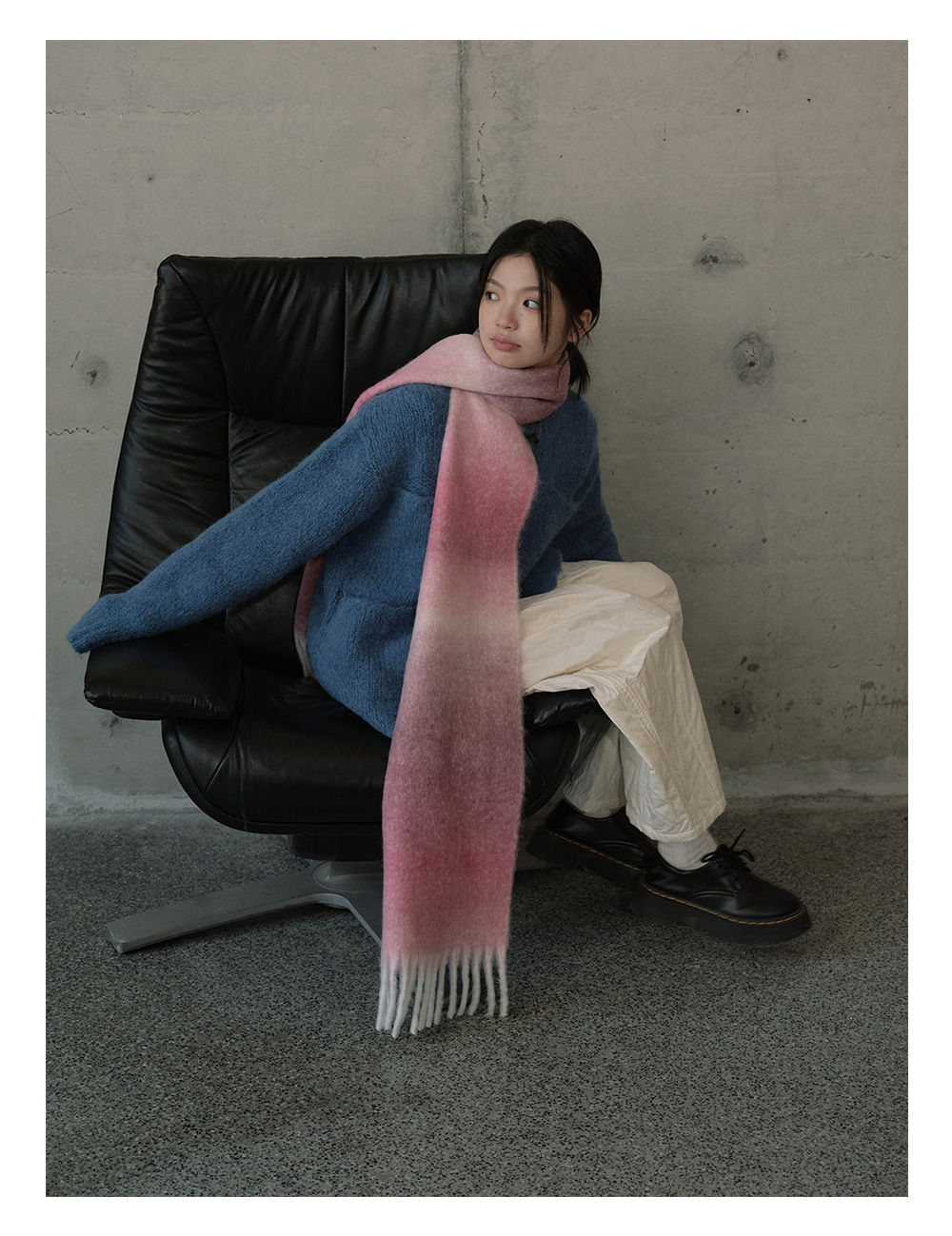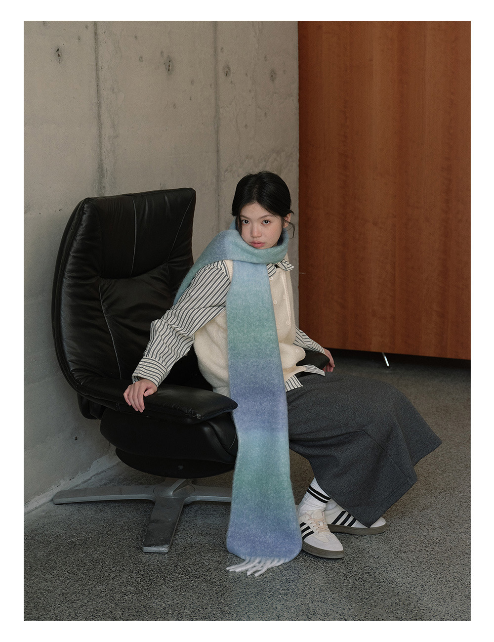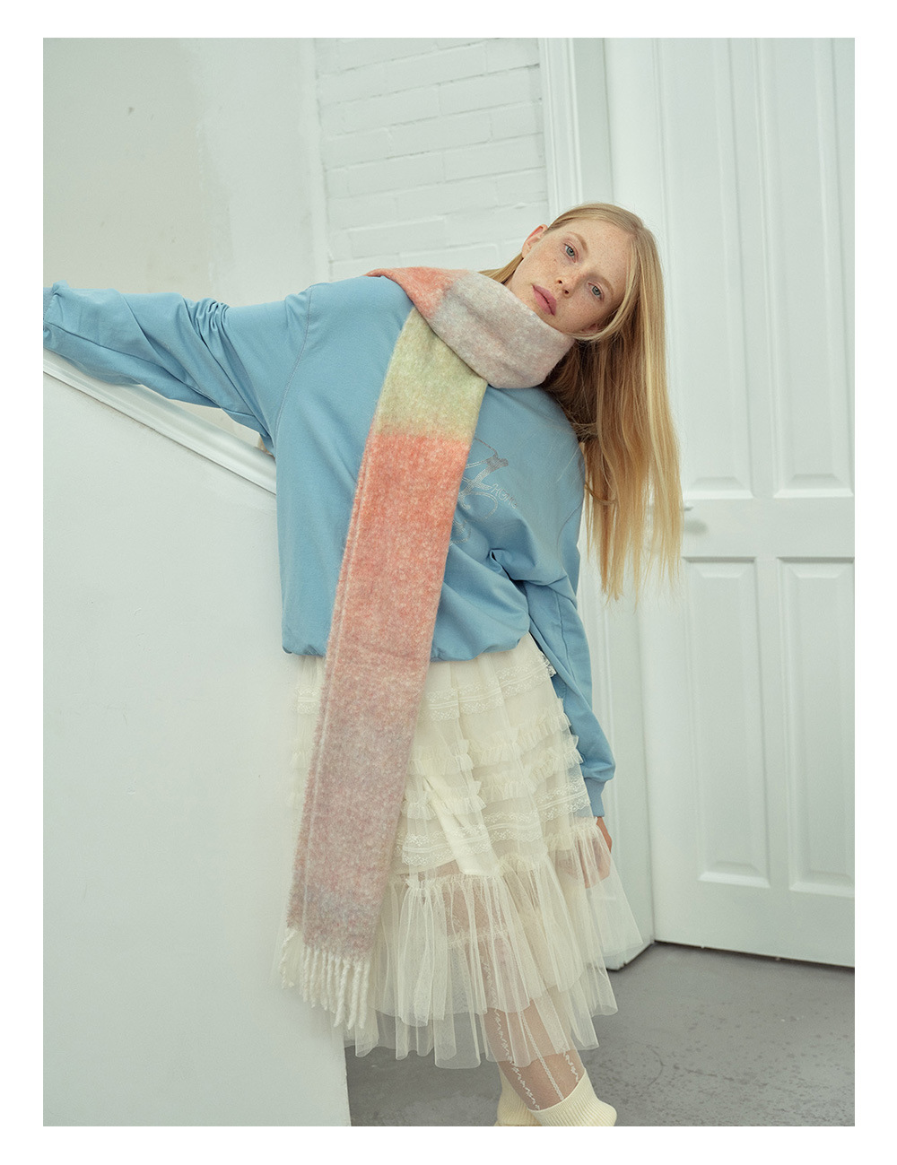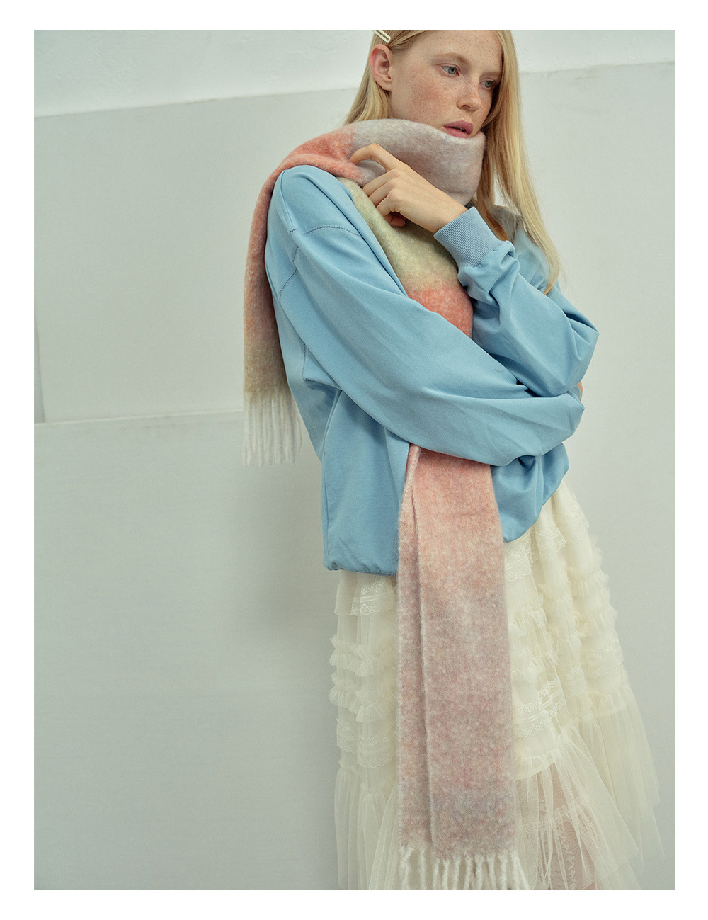 Wool blend gradual change marshmallow fringed scarf women's autumn and winter atmosphere with soft wool scarf