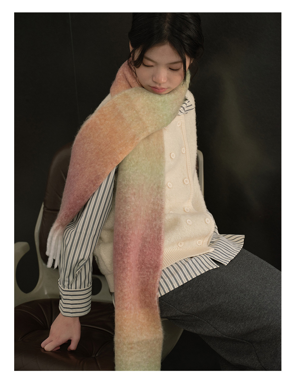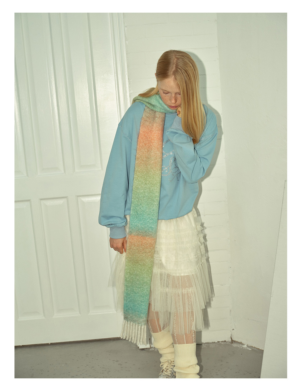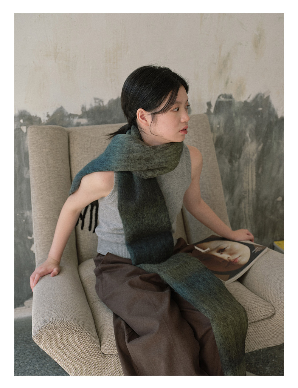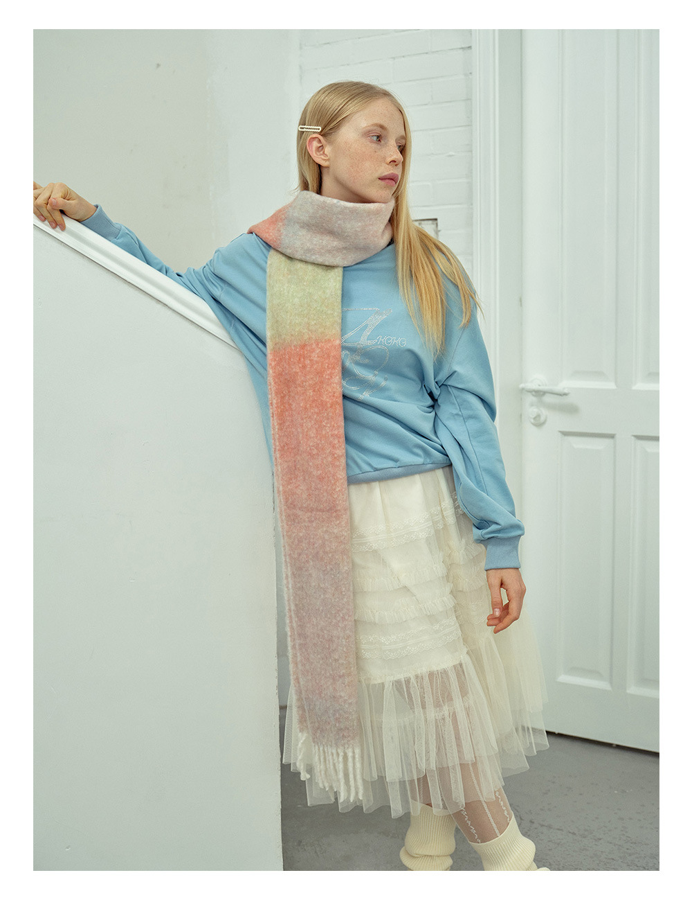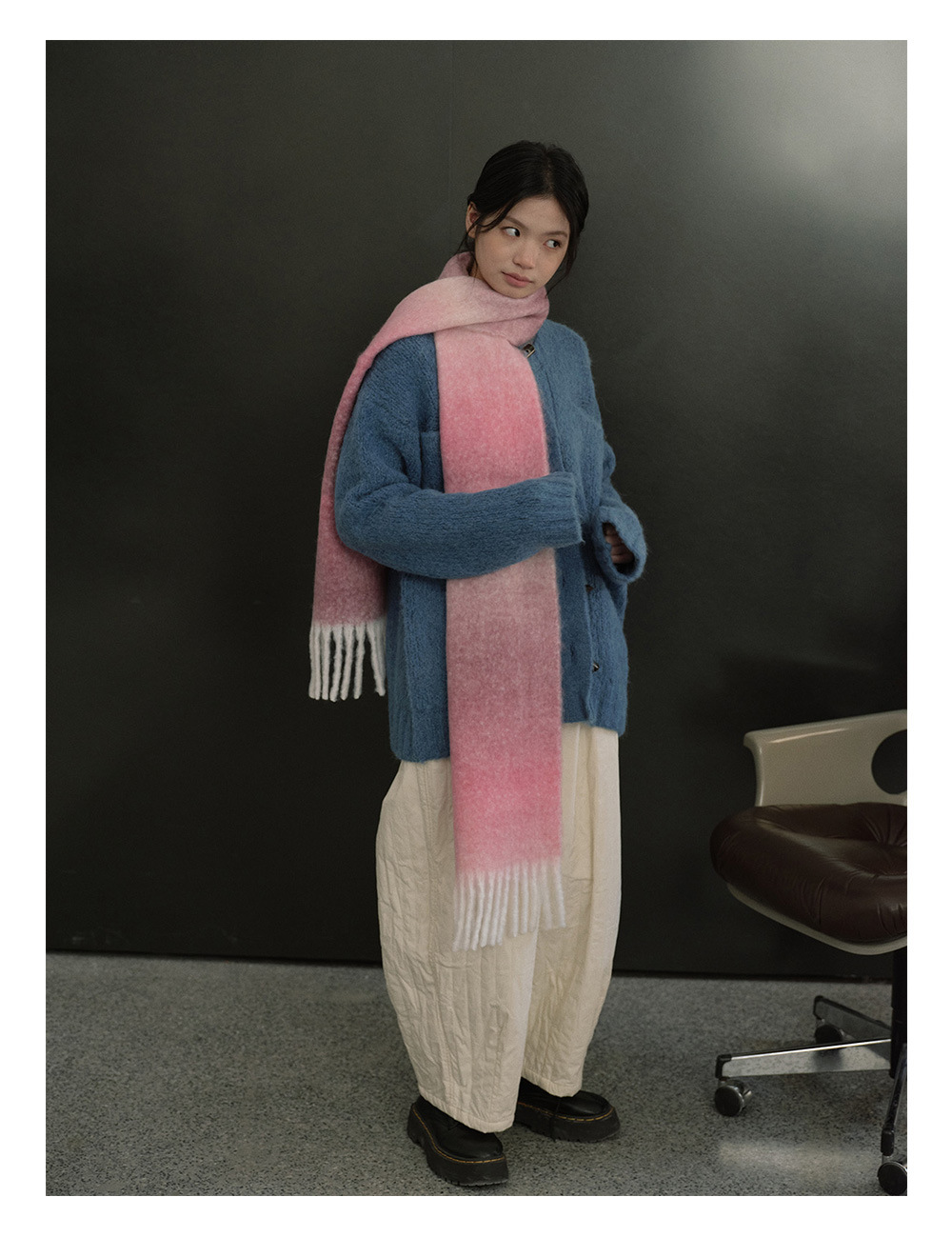 Wool blend gradual change marshmallow fringed scarf women's autumn and winter atmosphere with soft wool scarf