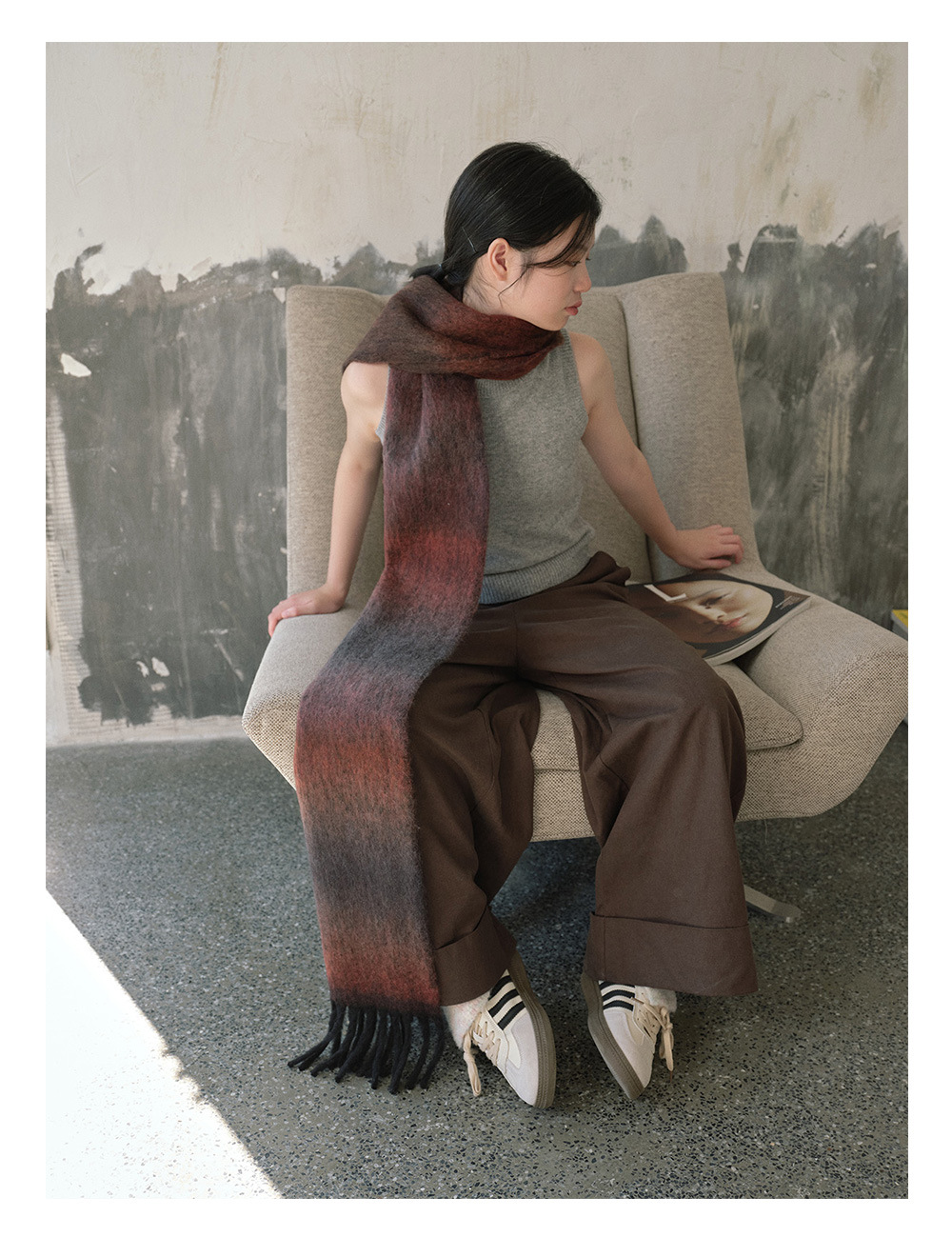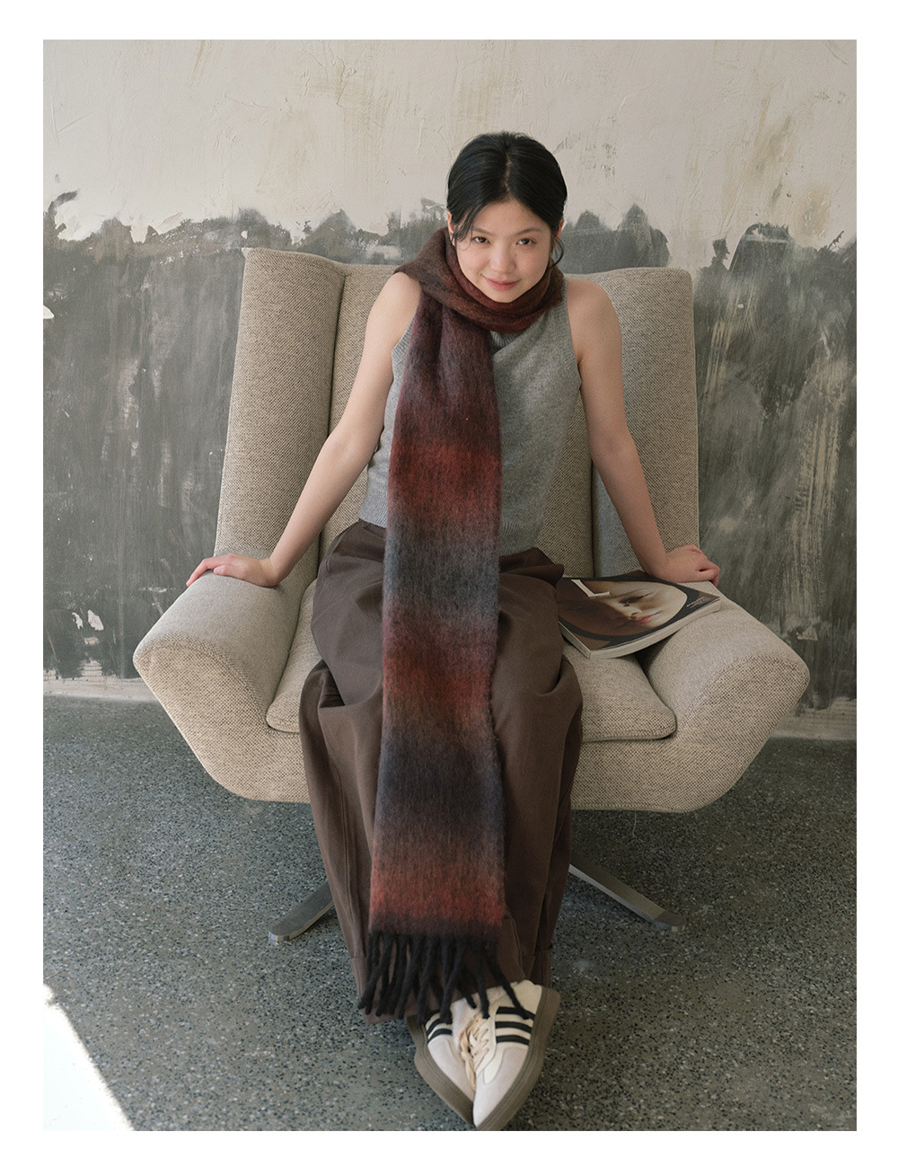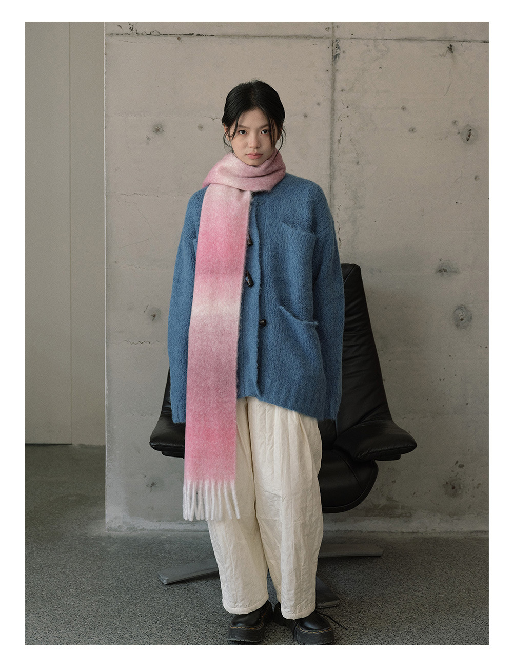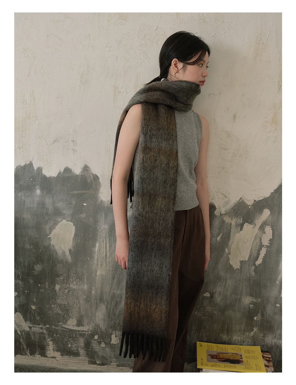 Wool blend gradual change marshmallow fringed scarf women's autumn and winter atmosphere with soft wool scarf