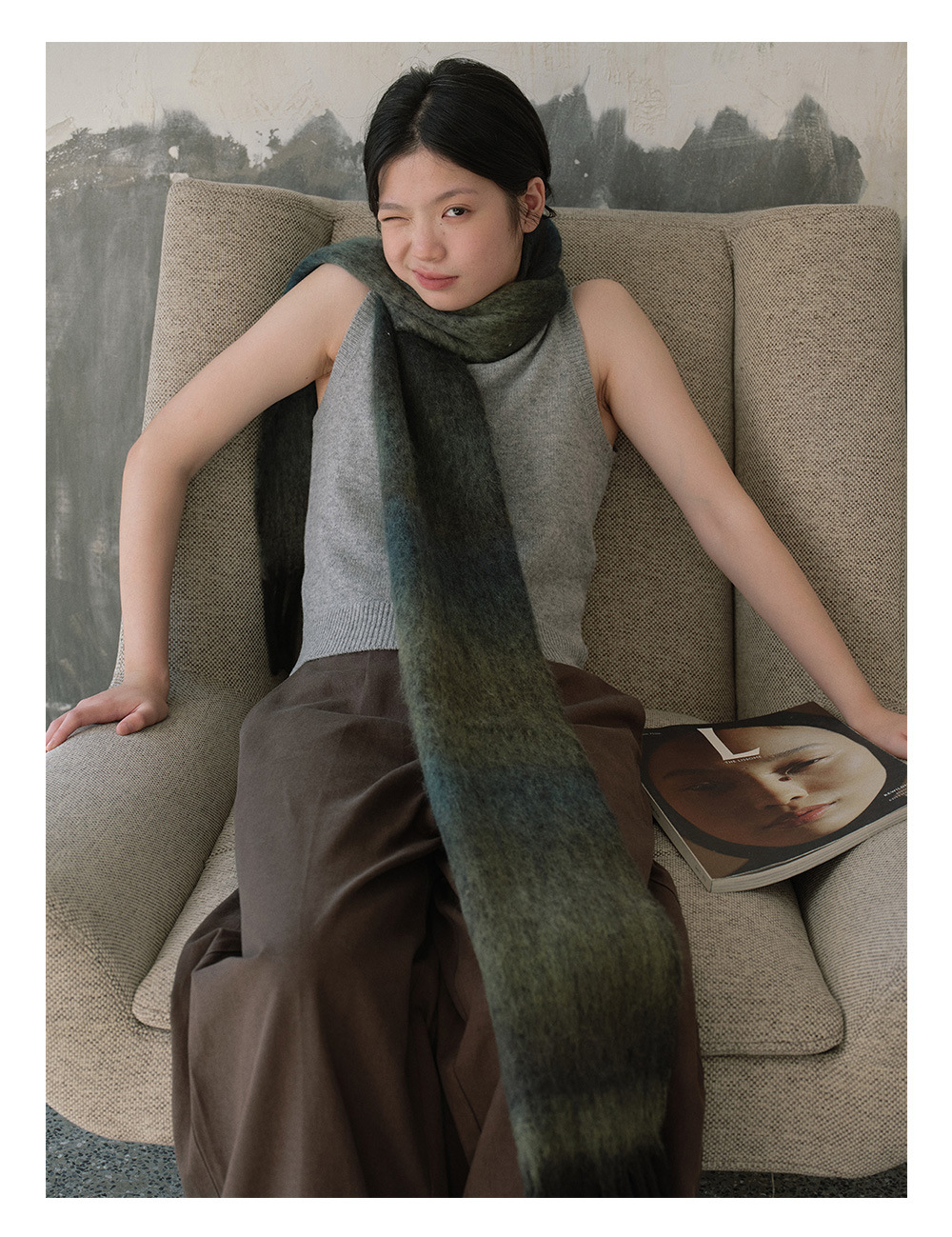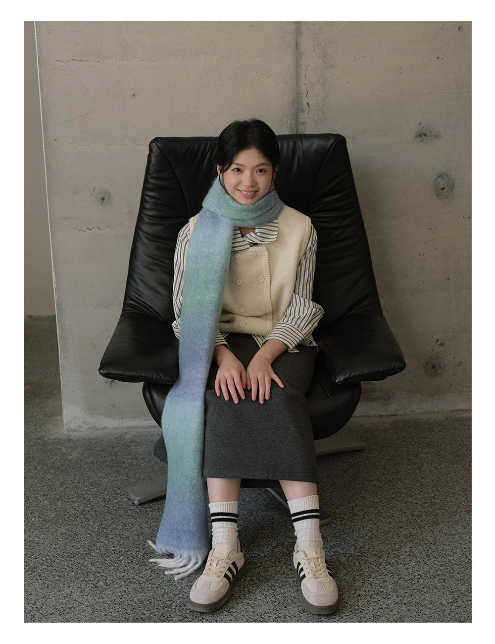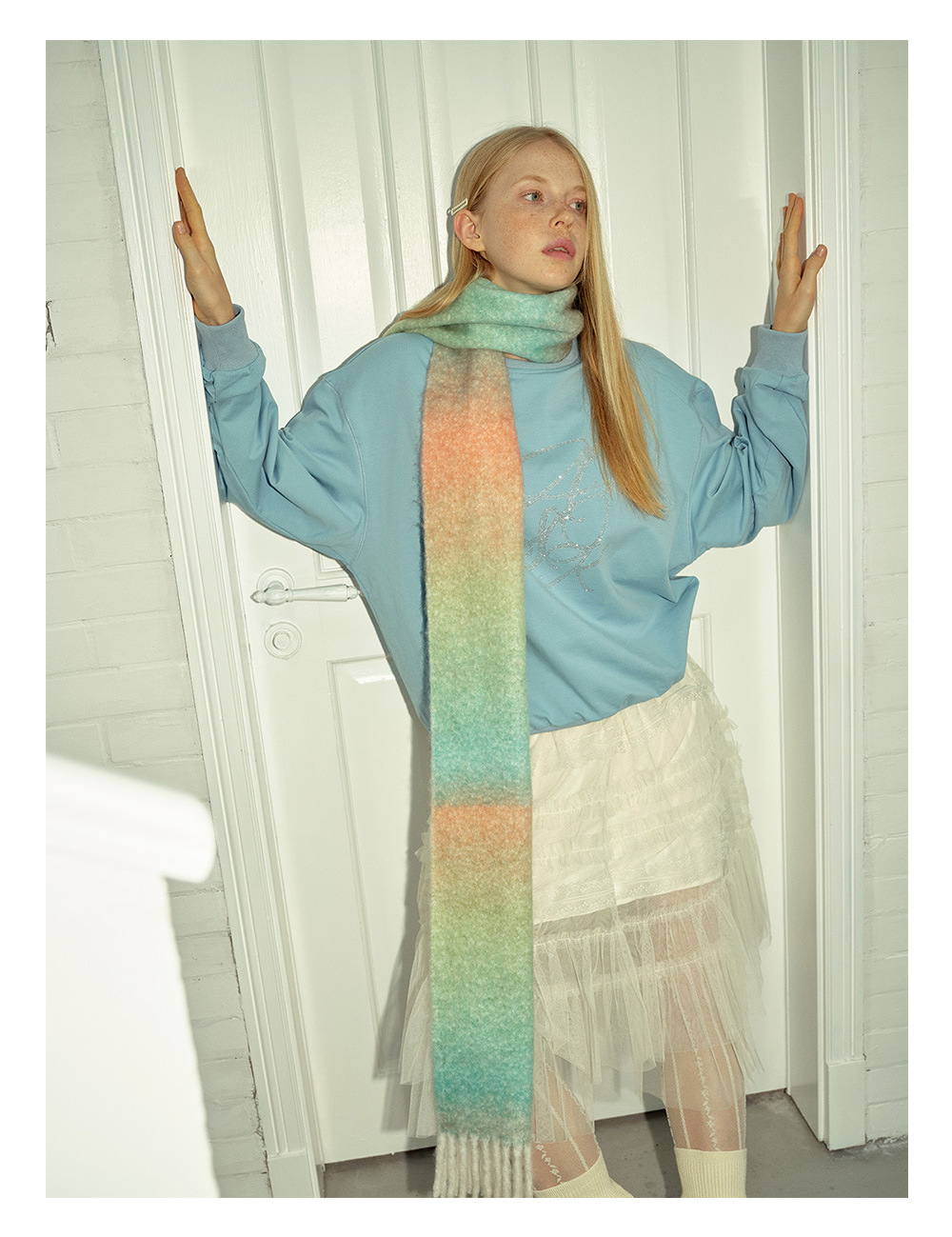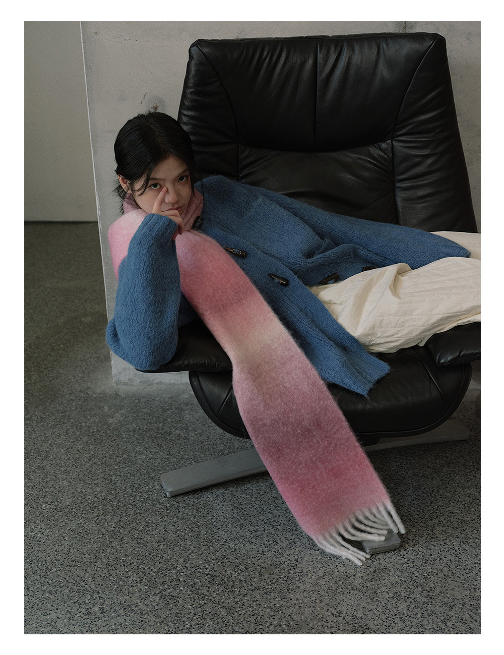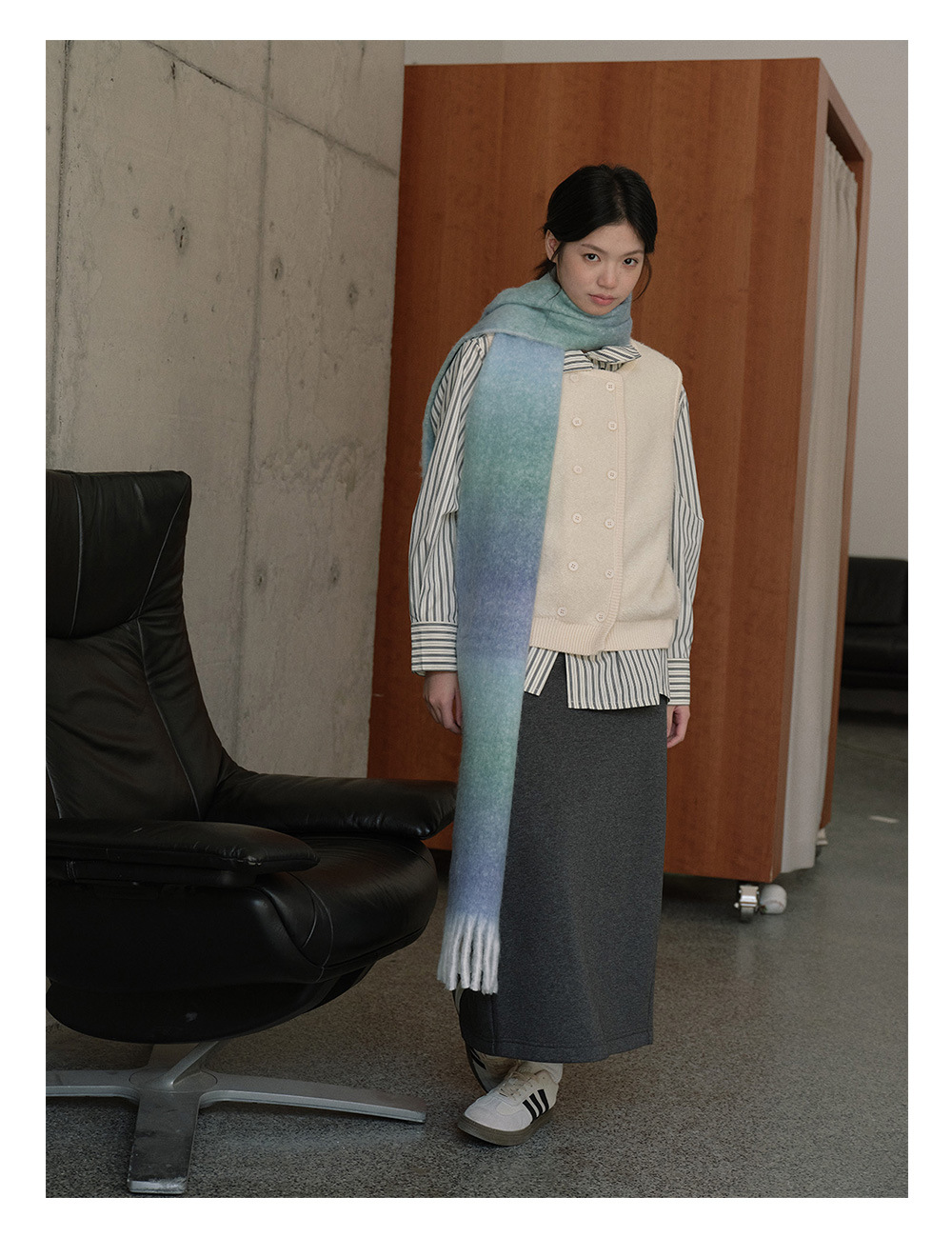 Wool blend gradual change marshmallow fringed scarf women's autumn and winter atmosphere with soft wool scarf