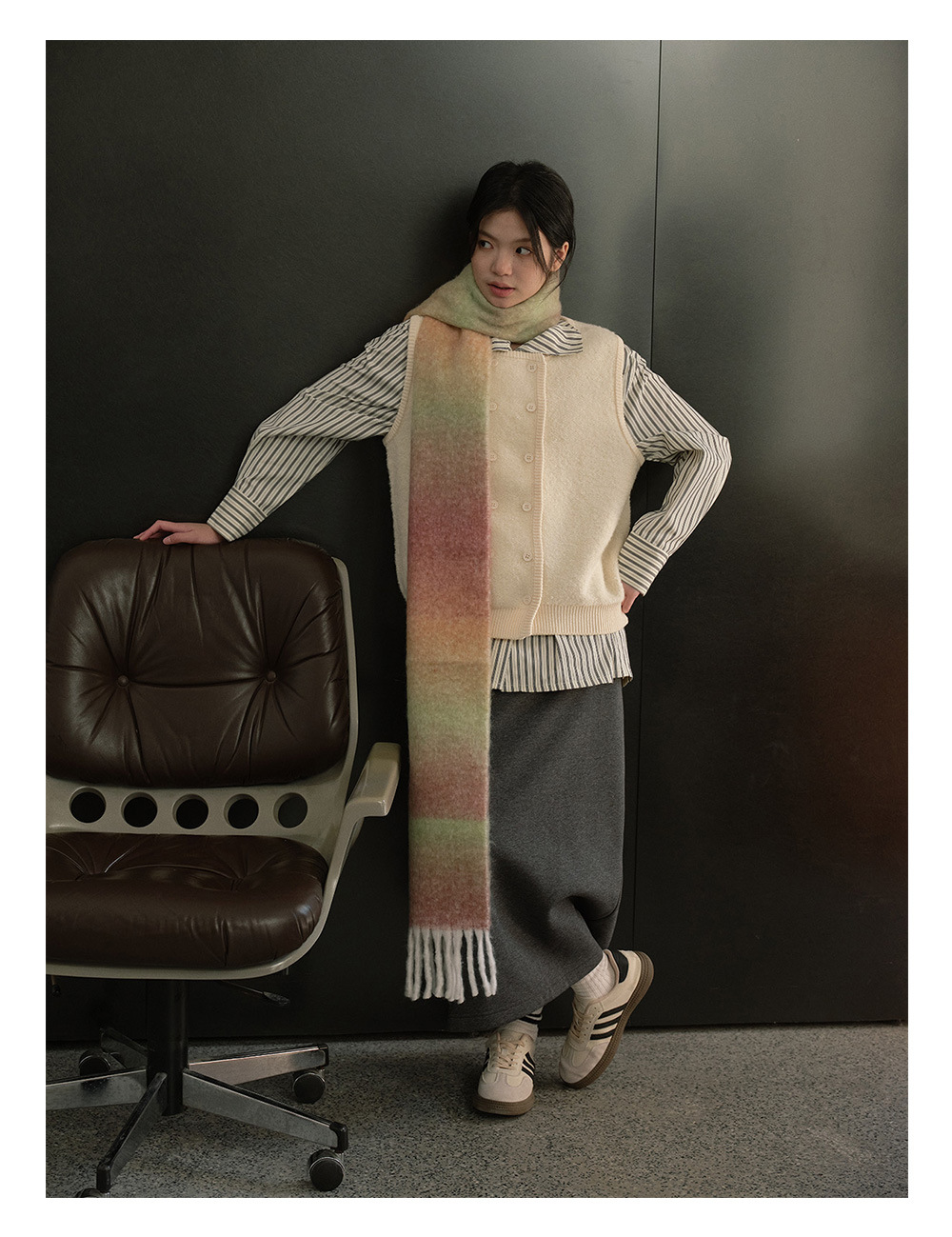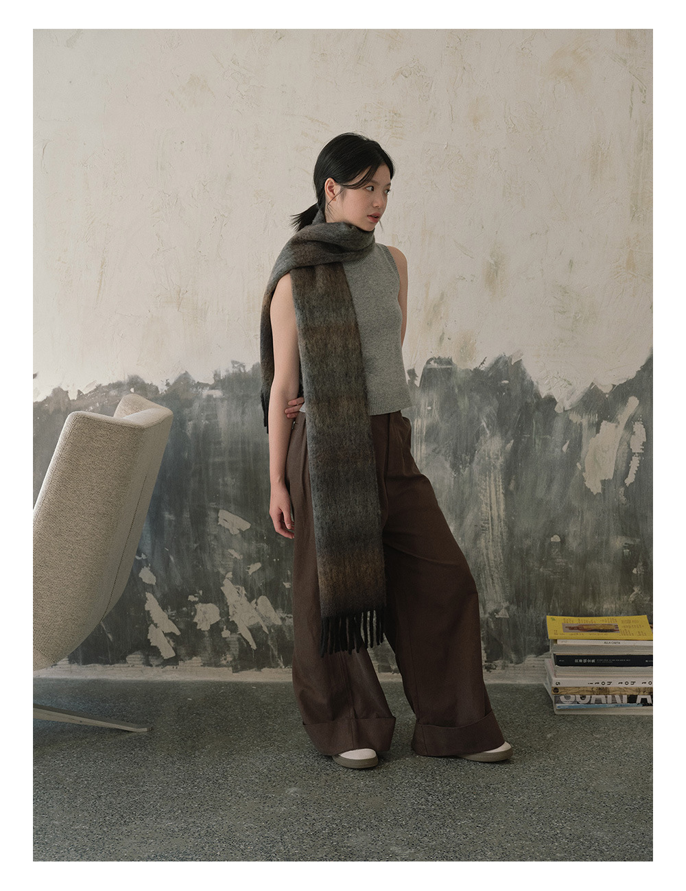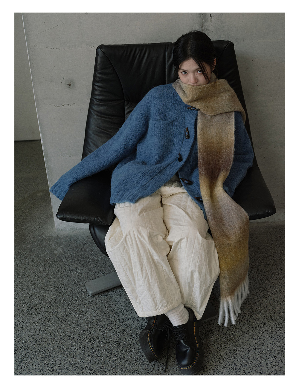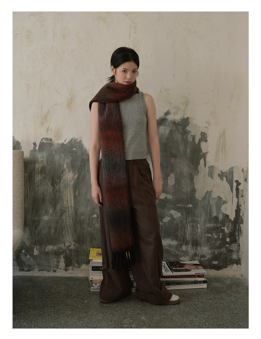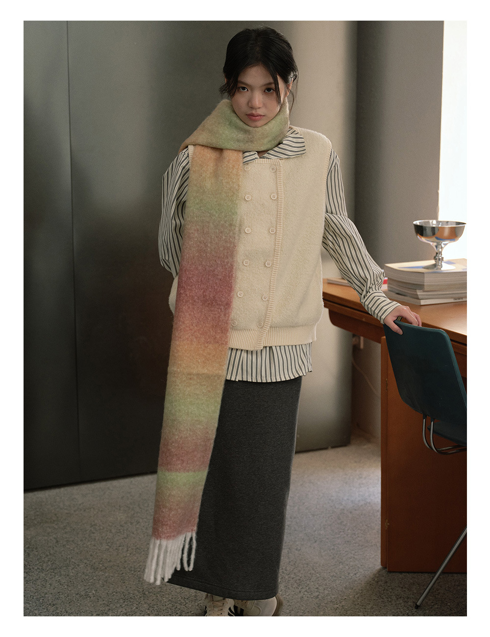 Wool blend gradual change marshmallow fringed scarf women's autumn and winter atmosphere with soft wool scarf