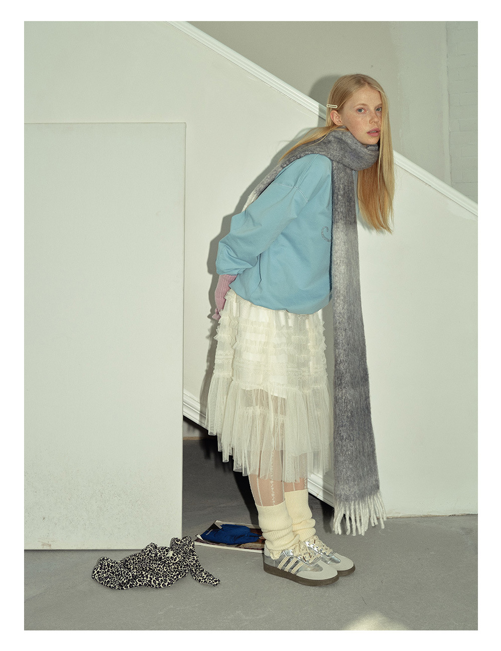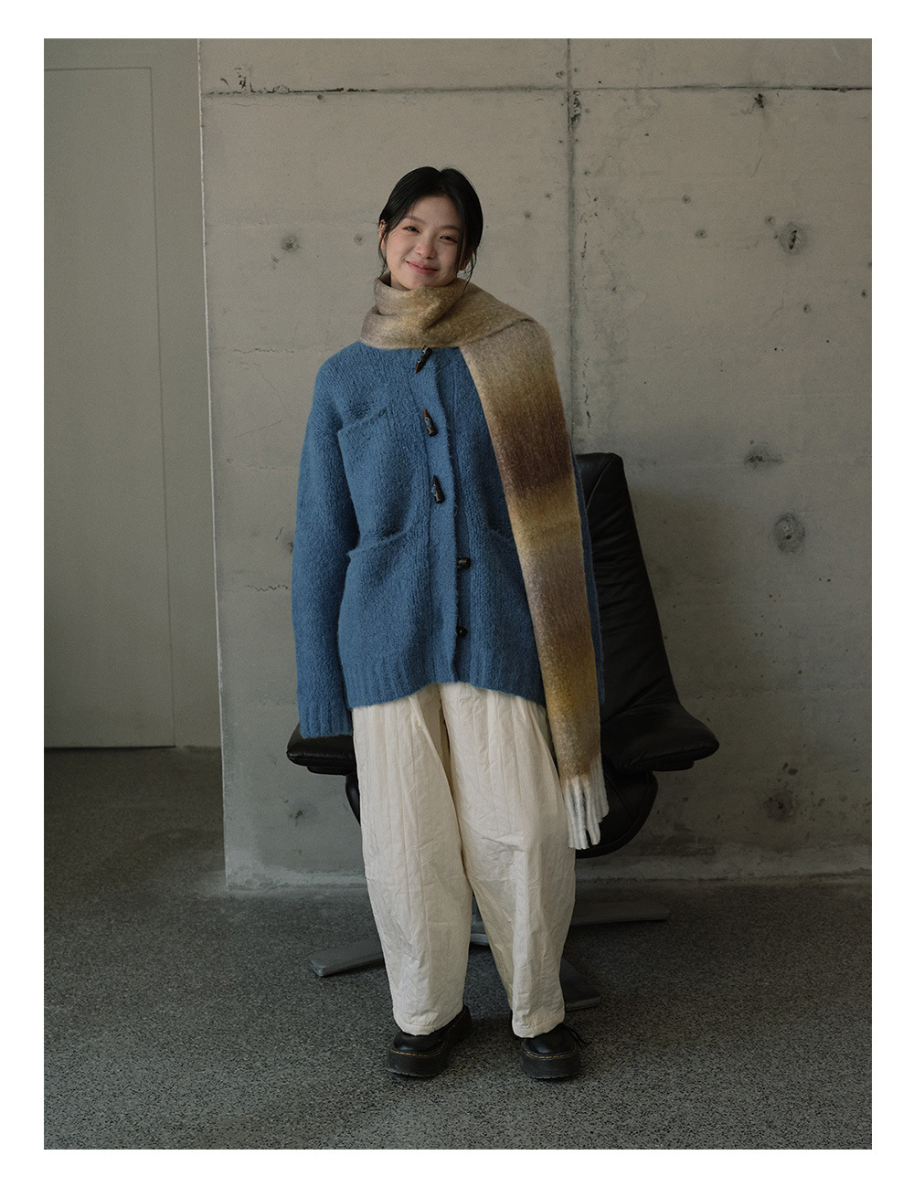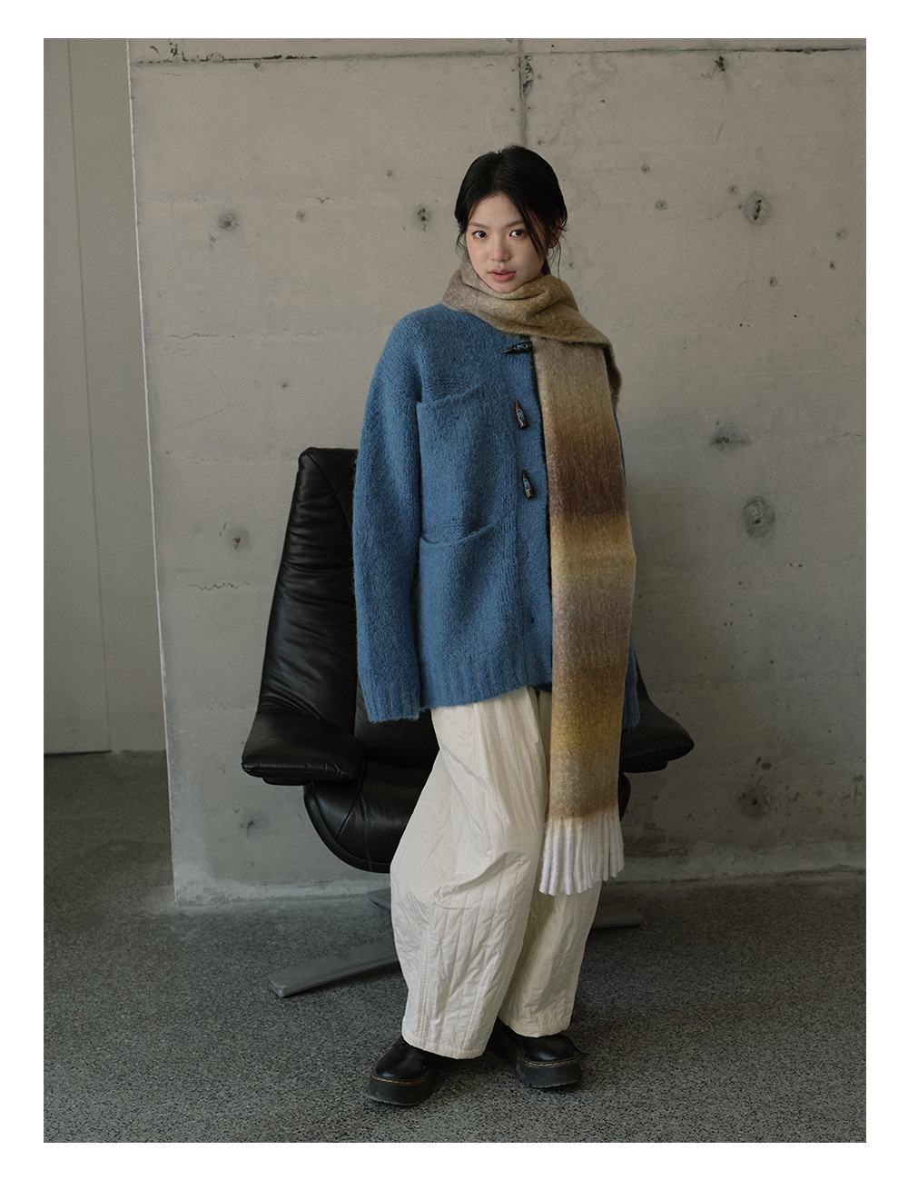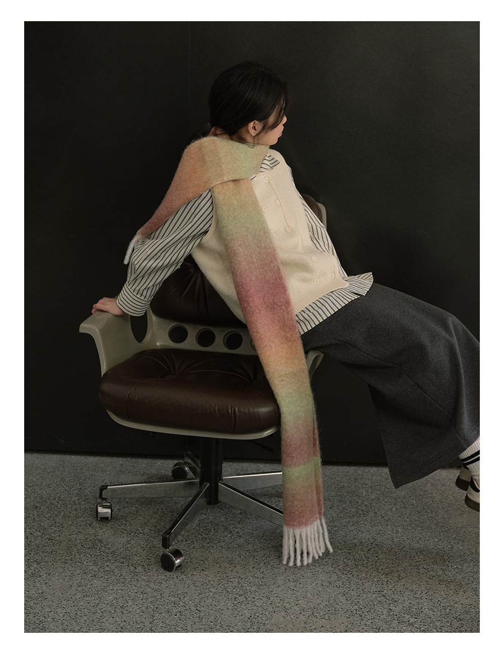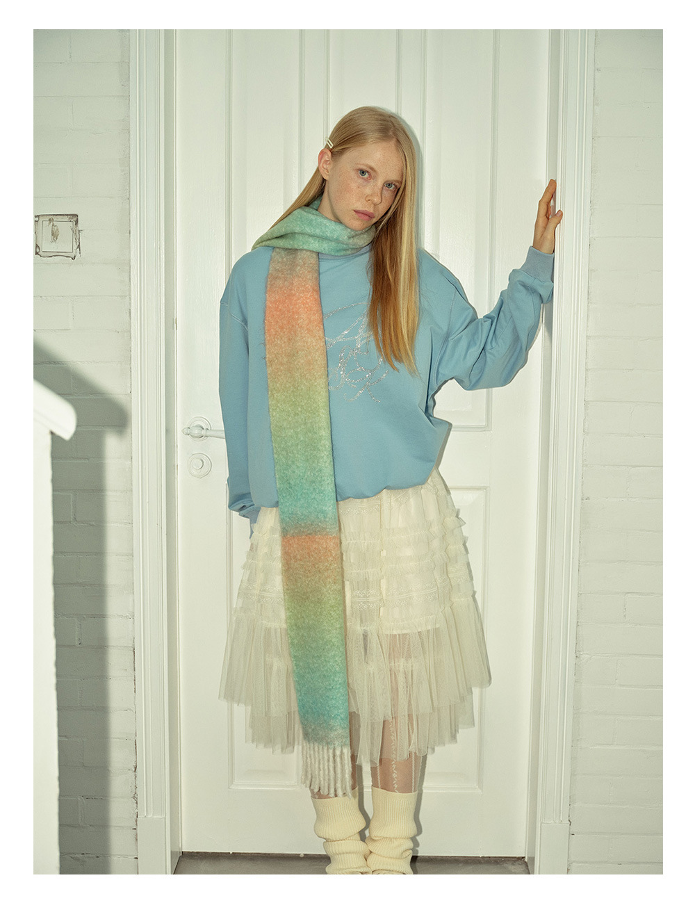 Wool blend gradual change marshmallow fringed scarf women's autumn and winter atmosphere with soft wool scarf