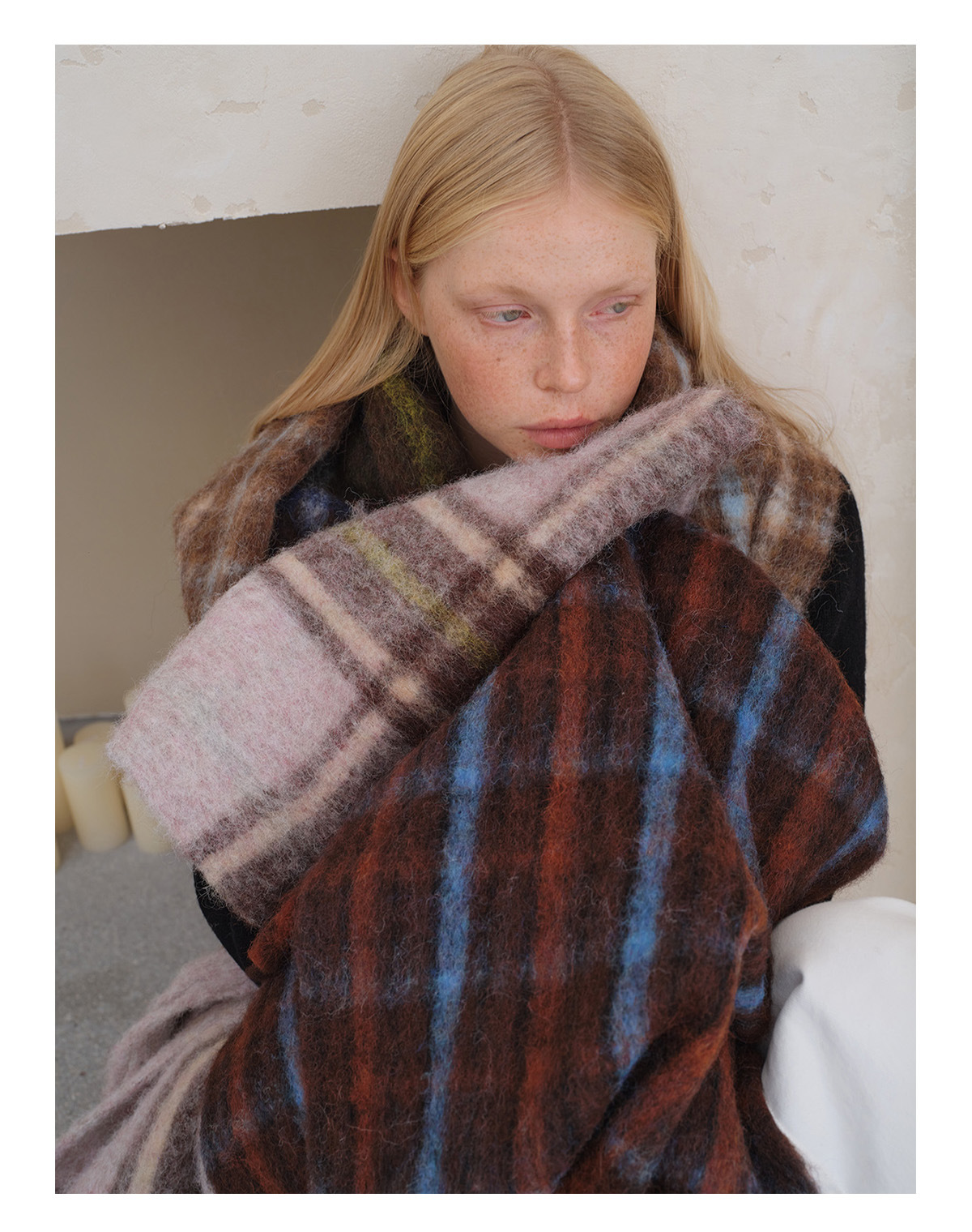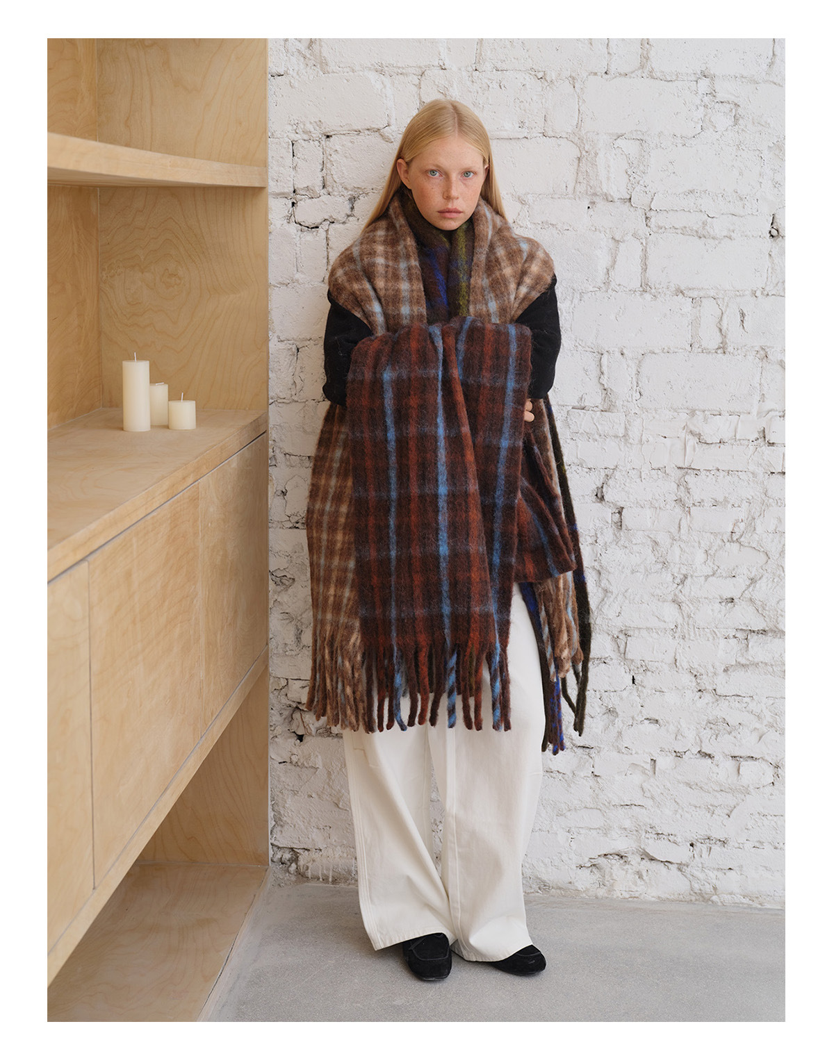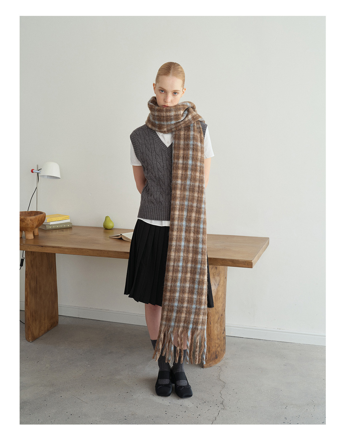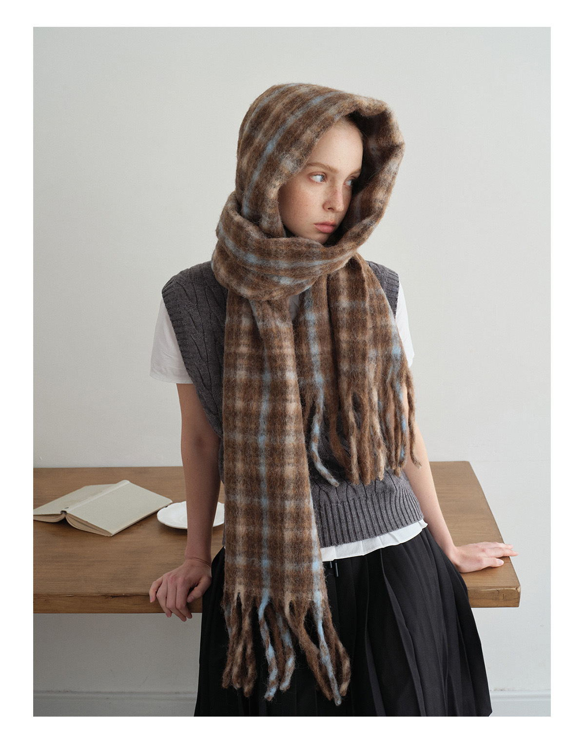 Wool blended coarse tassel plaid scarf women's autumn and winter increase lazy style Korean color matching shawl scarf