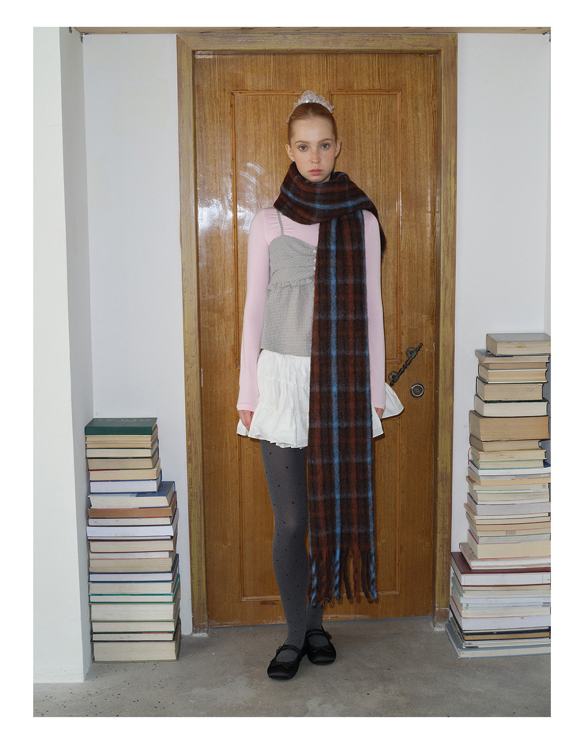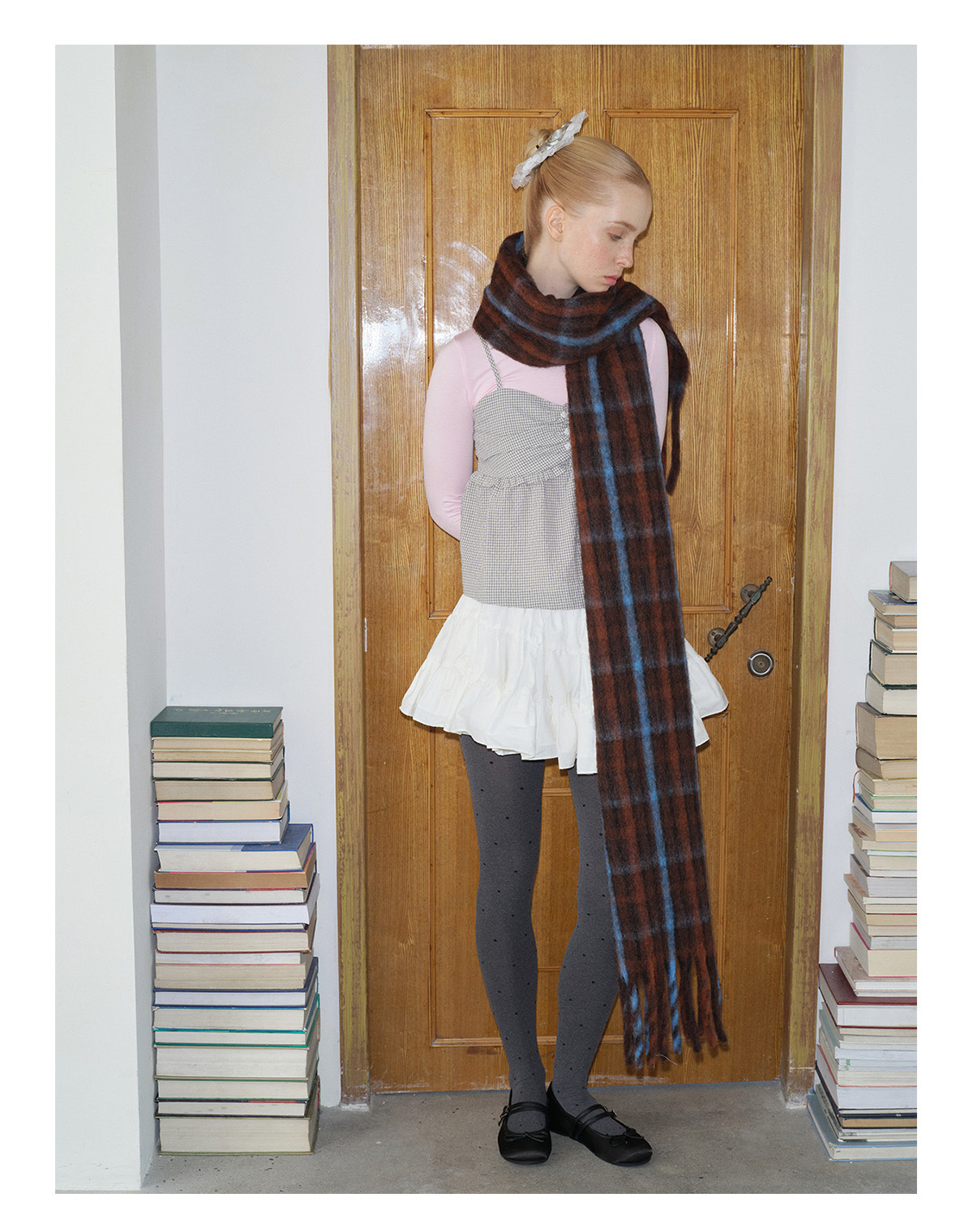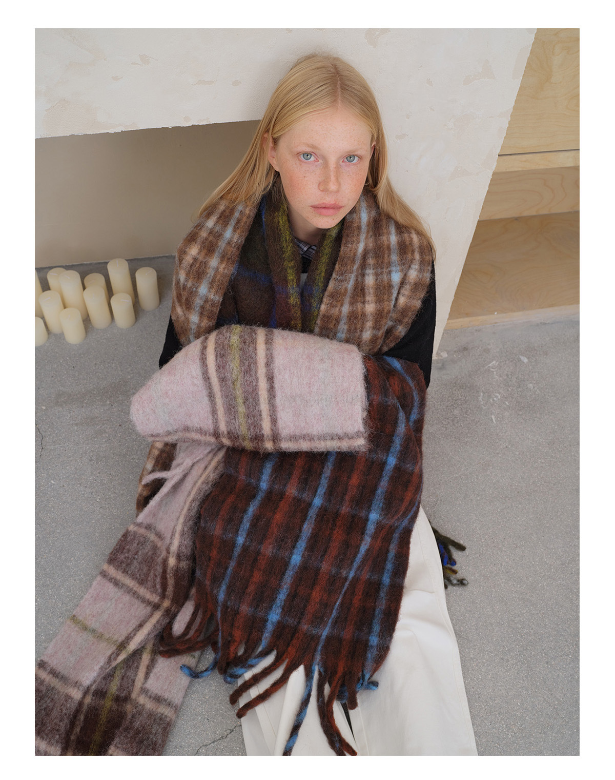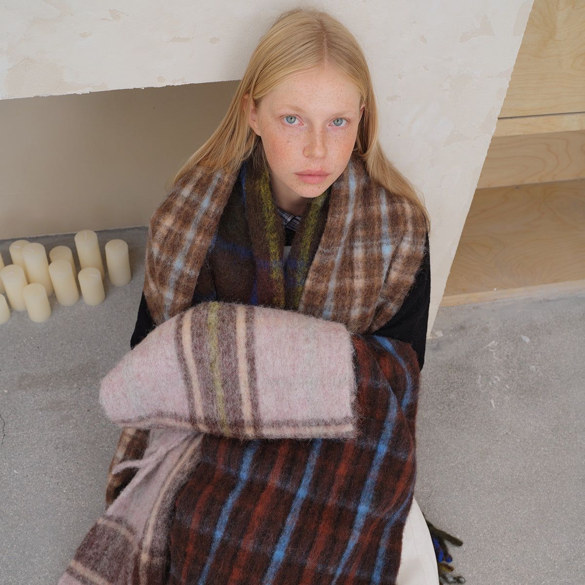 Wool blended coarse tassel plaid scarf women's autumn and winter increase lazy style Korean color matching shawl scarf