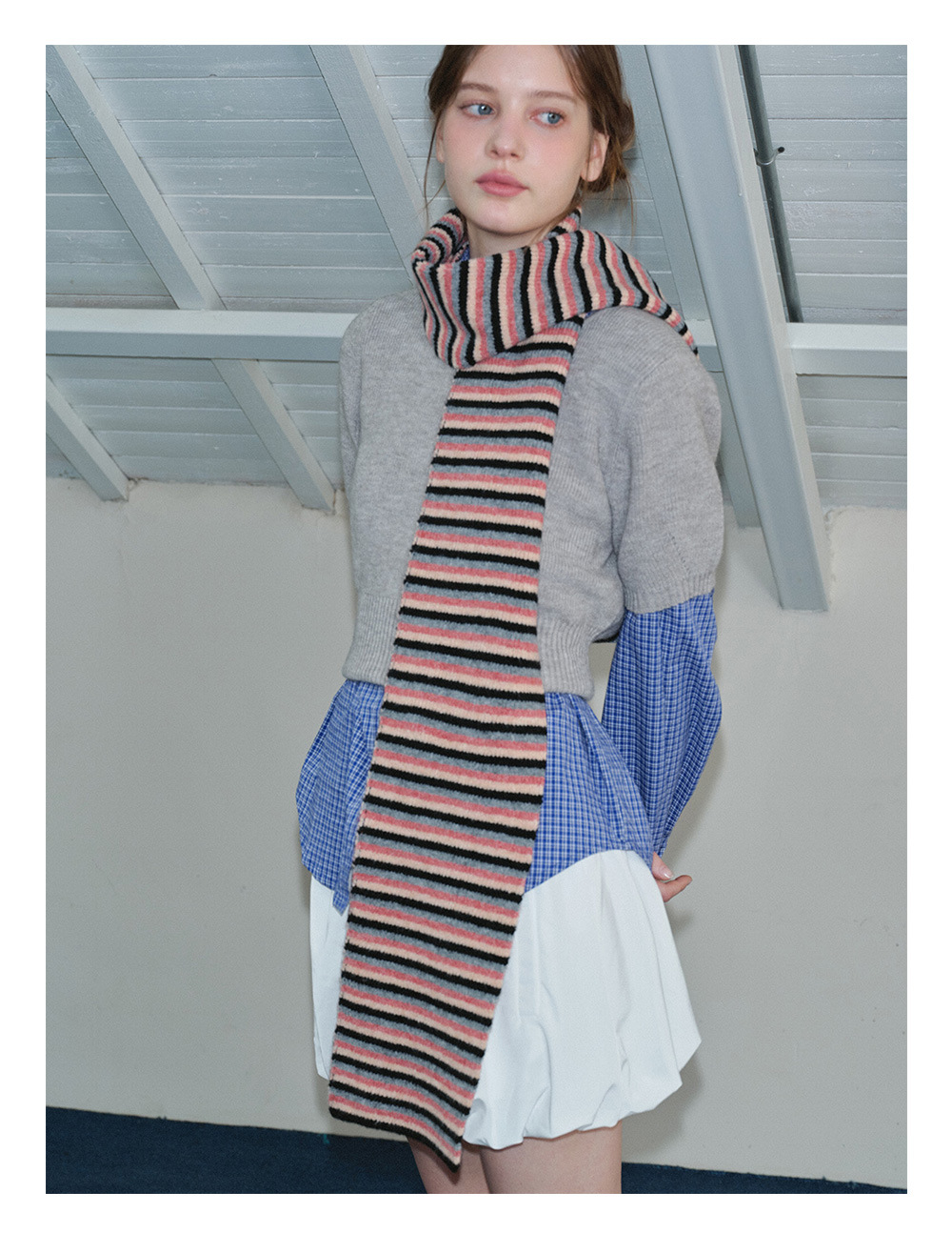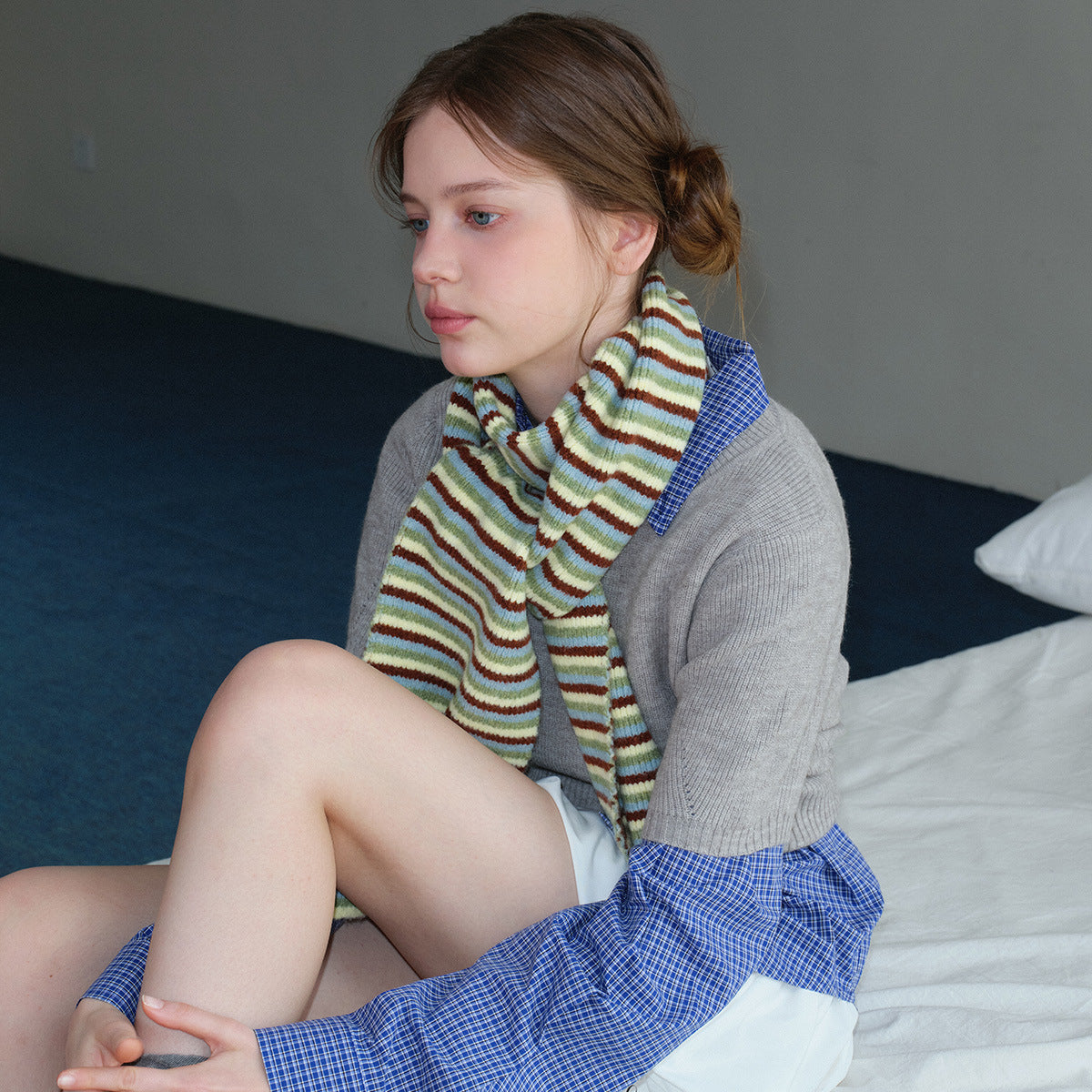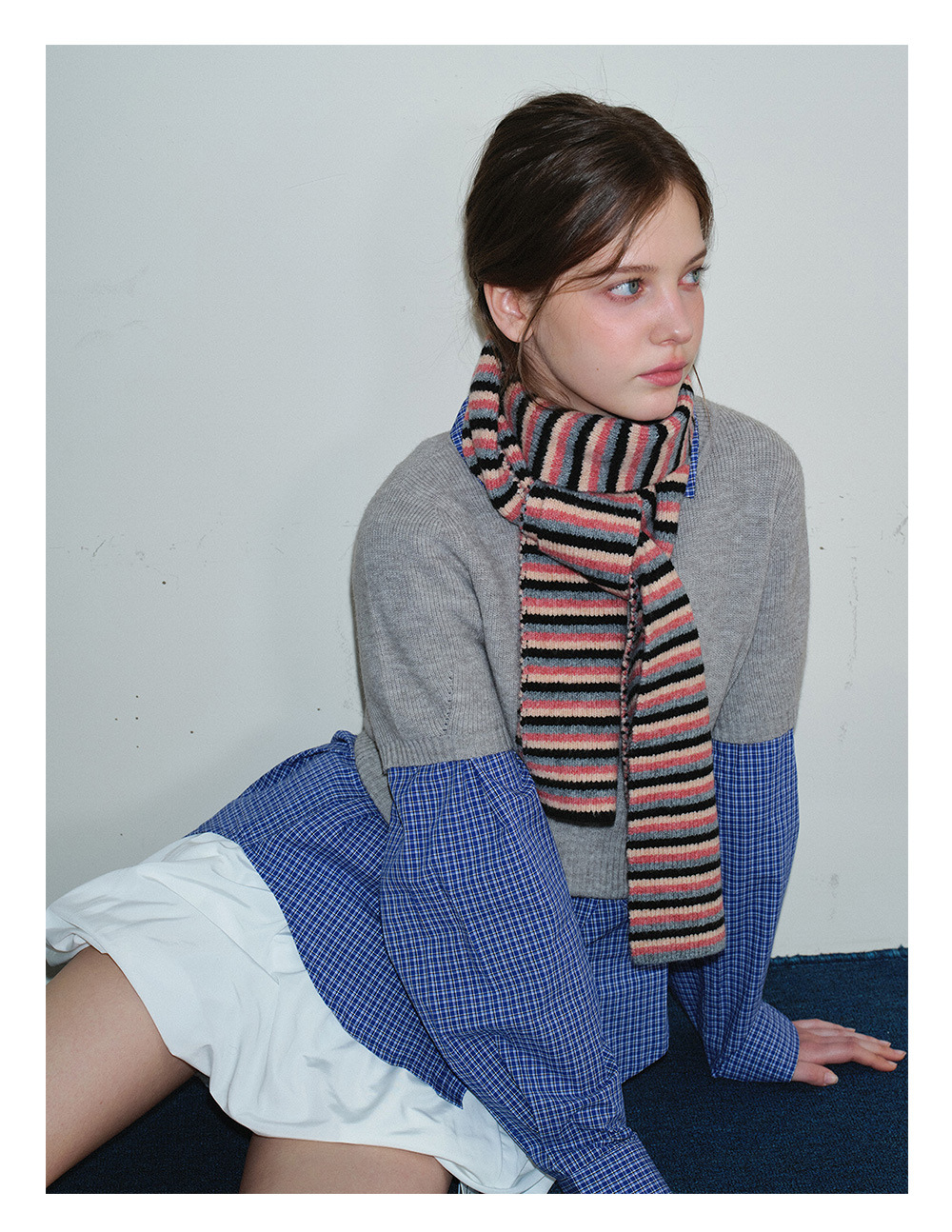 Wool blended contrasting striped knitted scarf women's autumn and winter Korean atmosphere soft wool scarf