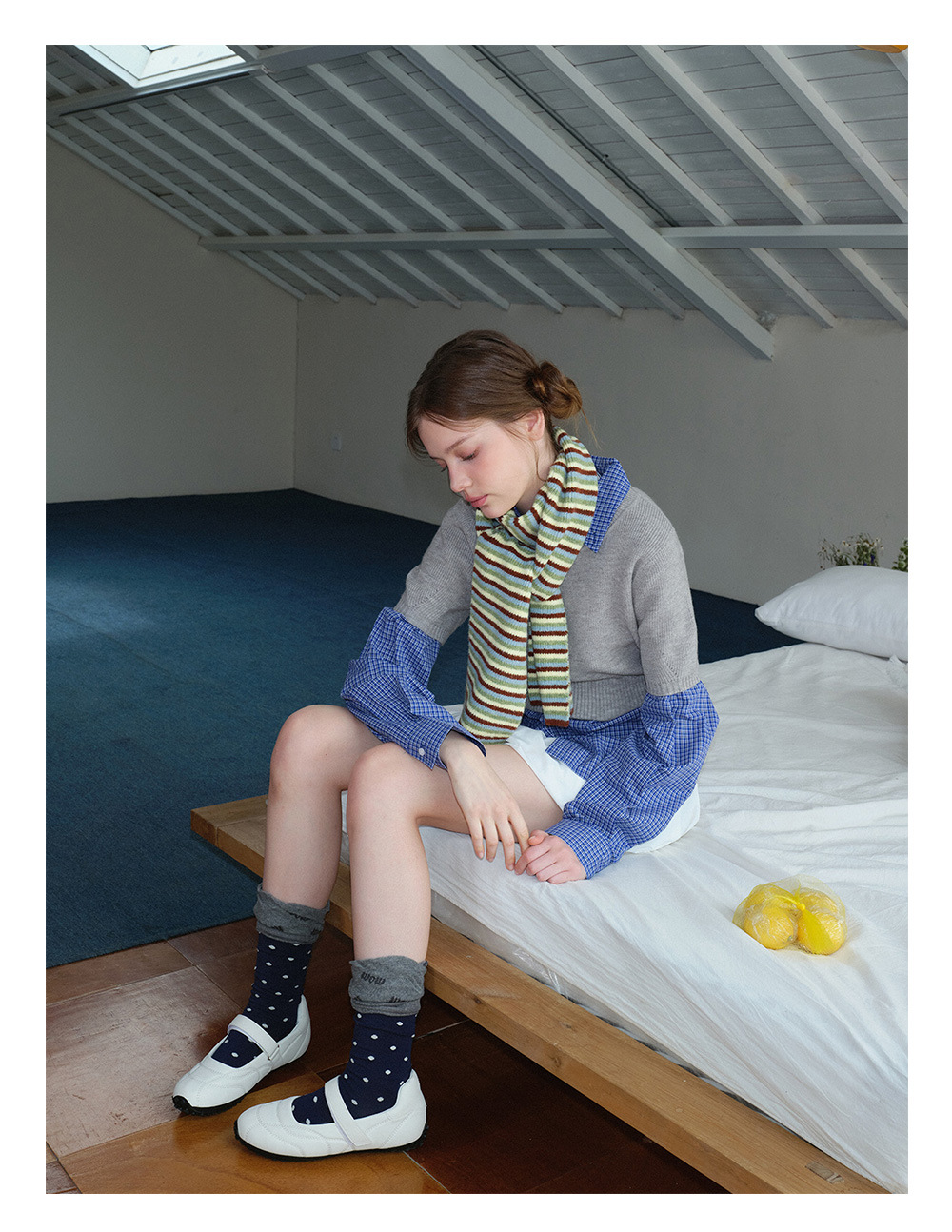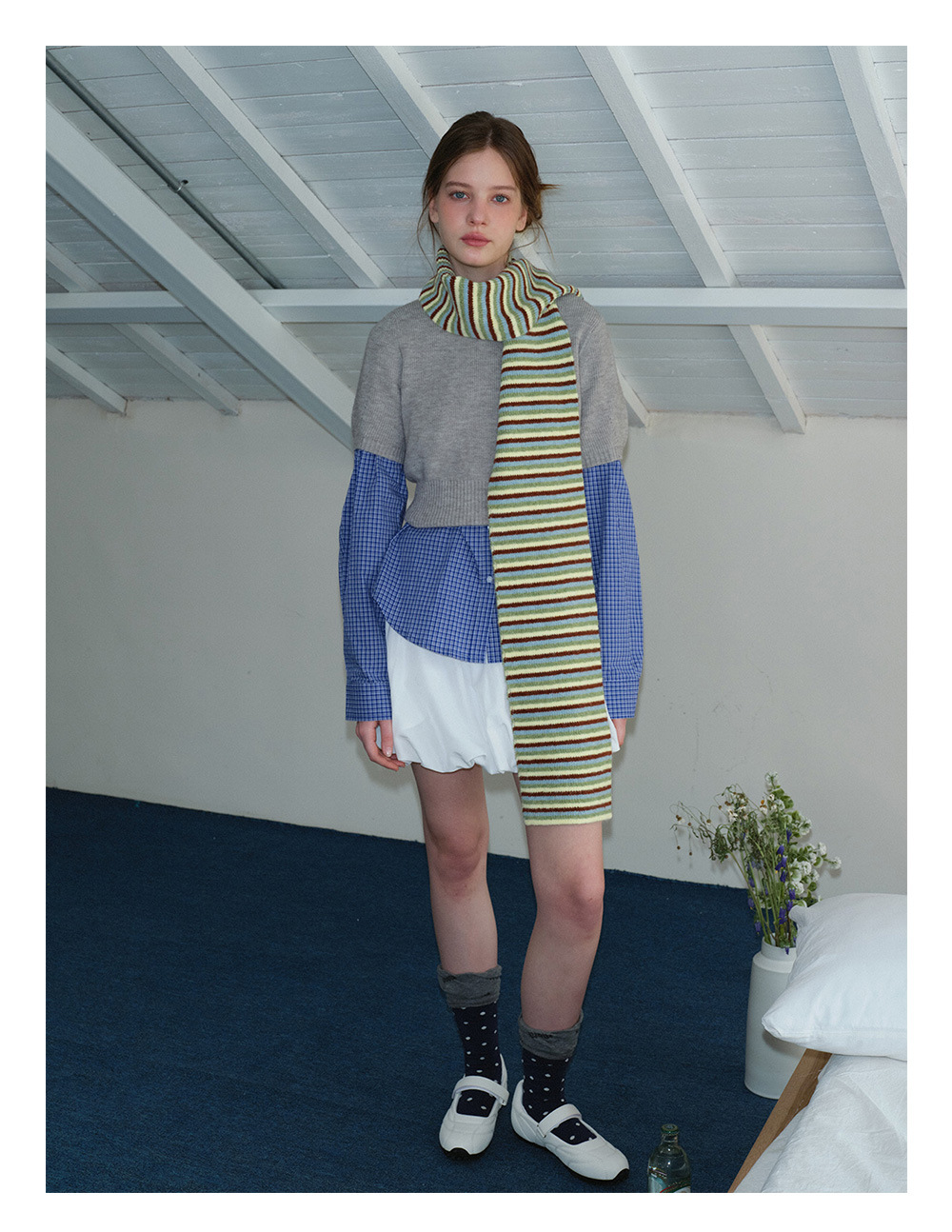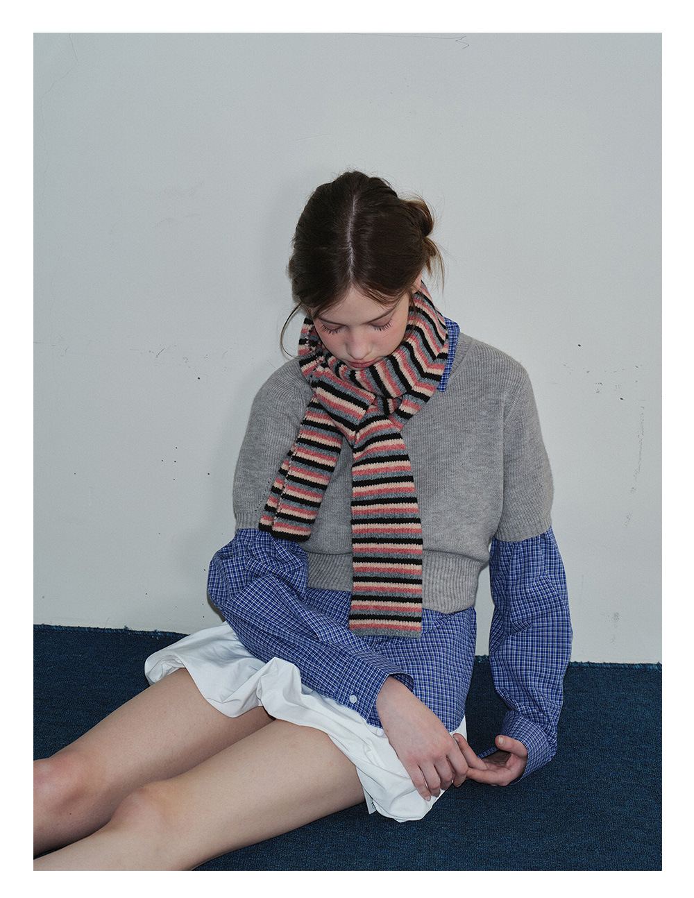 Wool blended contrasting striped knitted scarf women's autumn and winter Korean atmosphere soft wool scarf