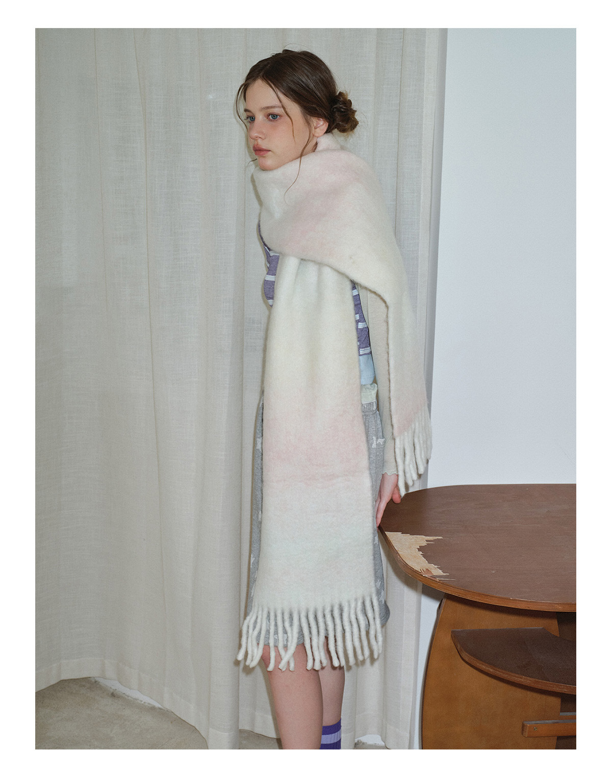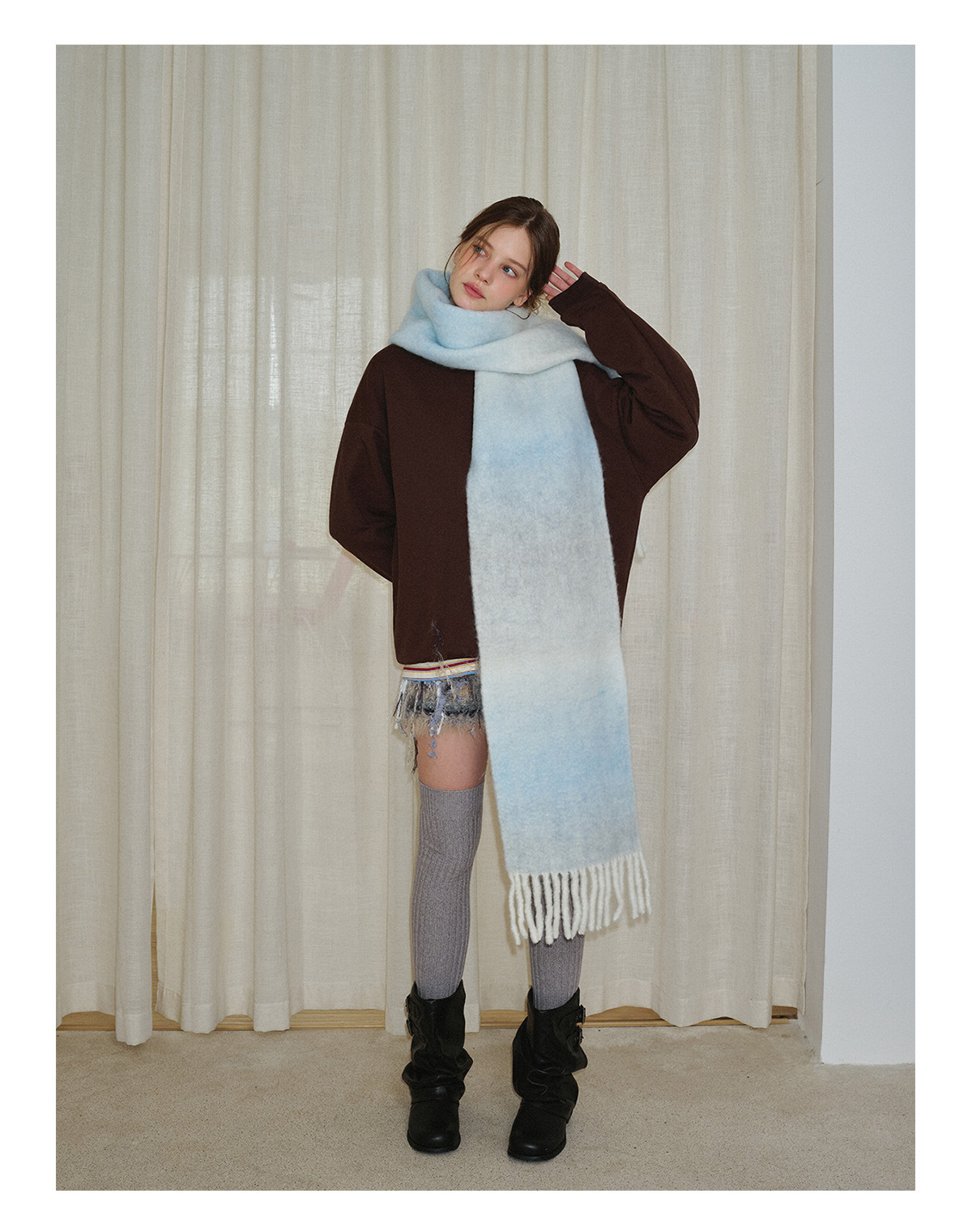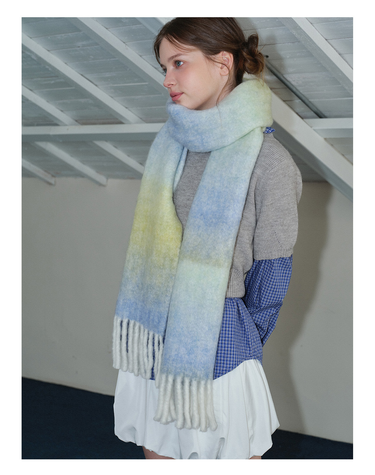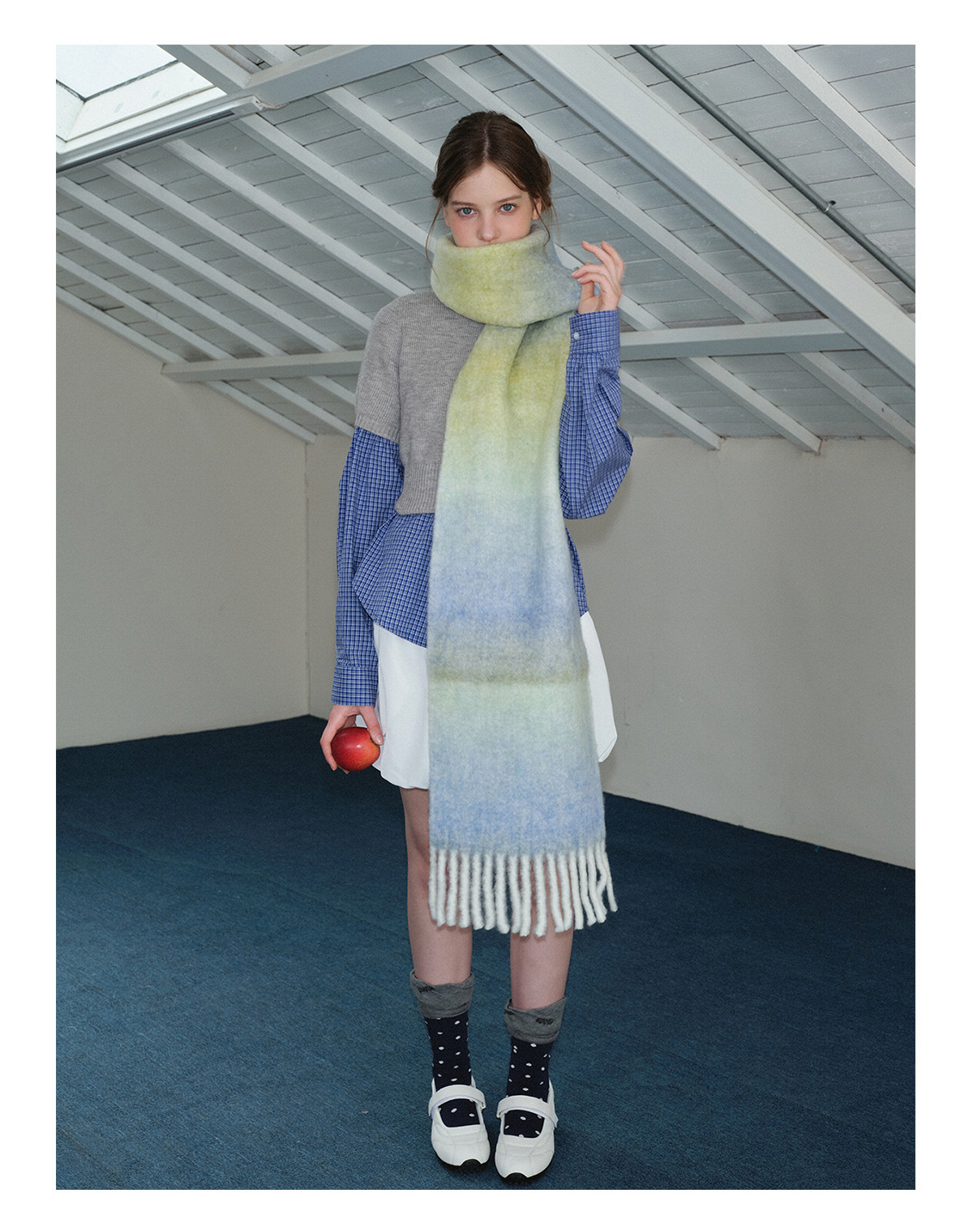 Wool blended gradual change of color scarf women's autumn and winter thickened warm ins atmosphere increased soft scarf