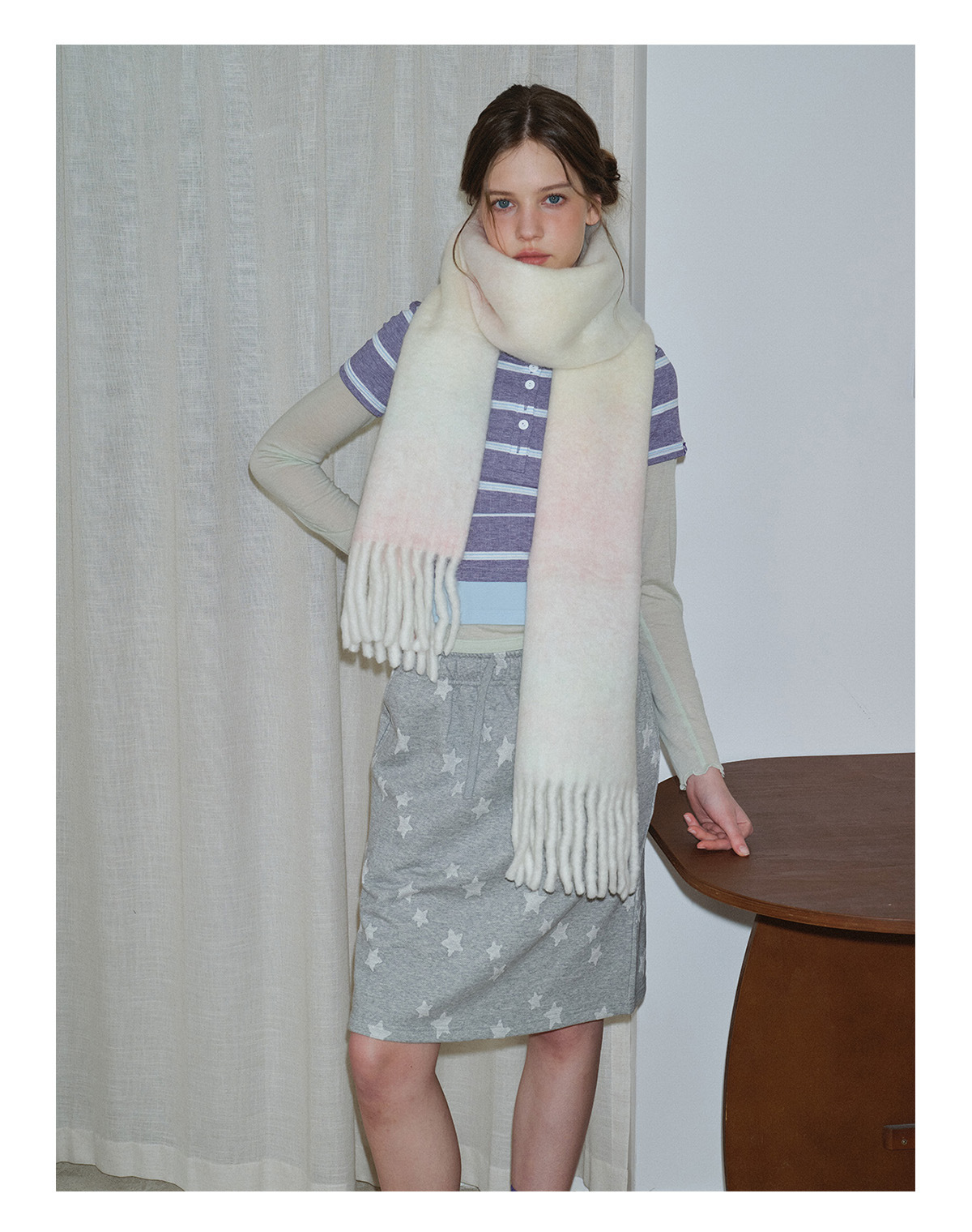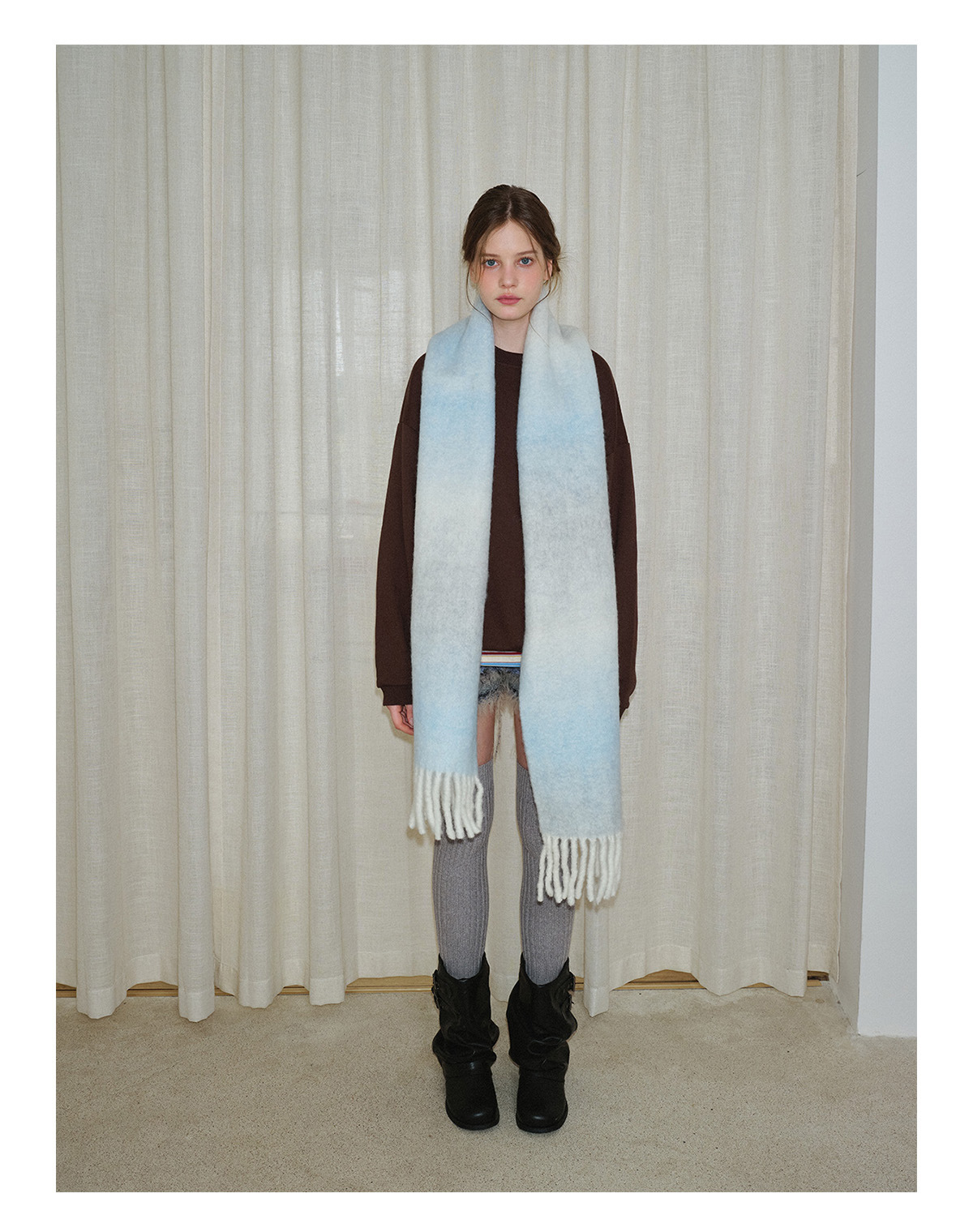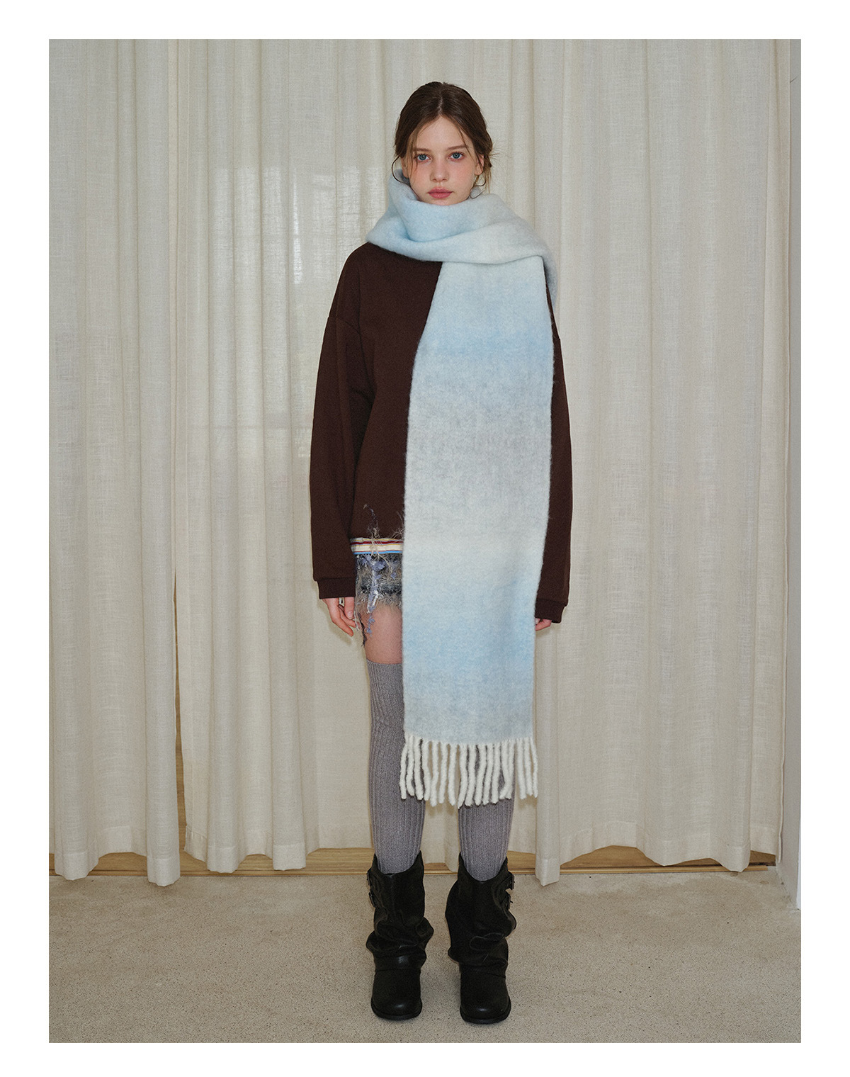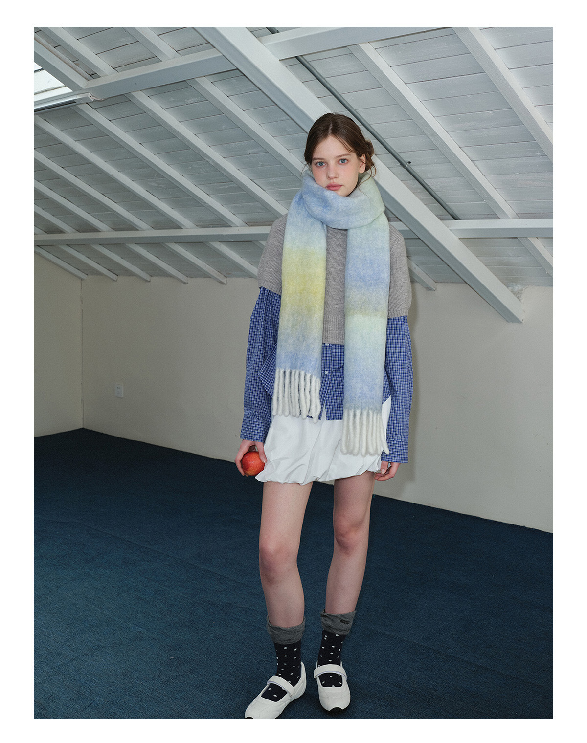 Wool blended gradual change of color scarf women's autumn and winter thickened warm ins atmosphere increased soft scarf