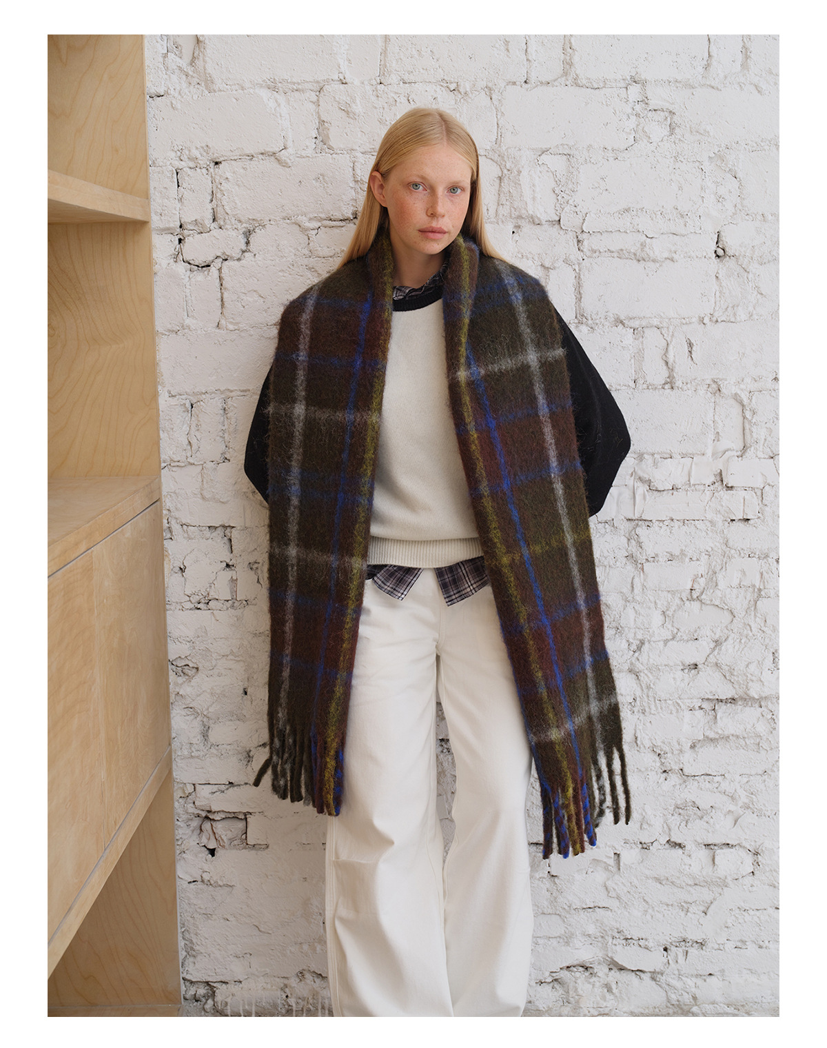 Wool blended plaid scarf women's winter enlarged shawl soft atmosphere coarse beard fringed plaid scarf
